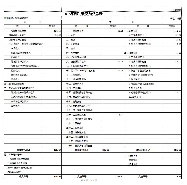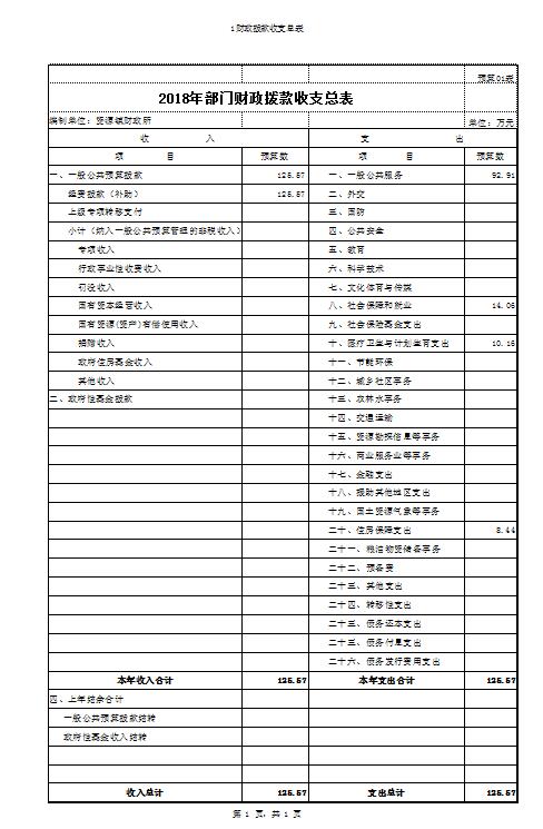 我单位2018年财政拨款收支预算125.57万元。收入预算中:一般公共预算拨款125.57万元,支出包括:一般公共服务92.91万元;社会保障和就业14.06万元;医疗卫生与计划生育支出10.16万元;住房保障支出8.44万元。
