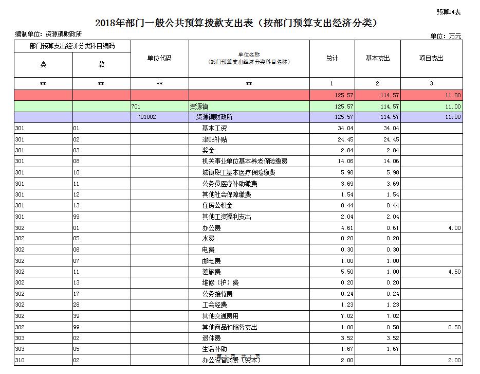 资源镇财政所2018年部门预算公开表_[701002]资源镇财政所.xls