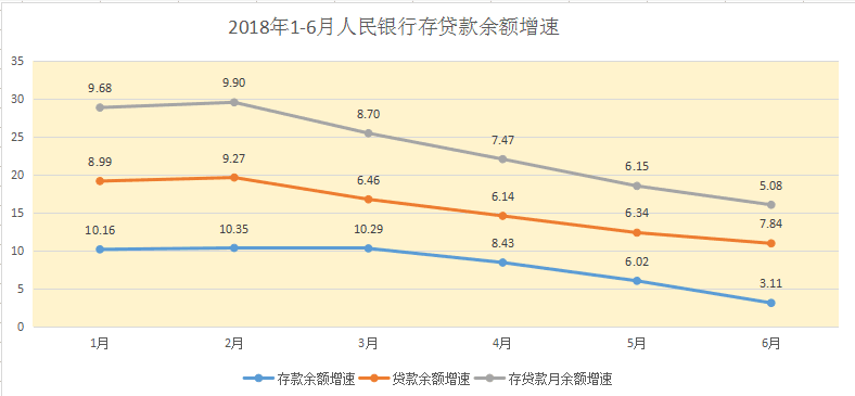 1、人民币存贷款余额增速一直回落。6月末,人民币存贷款余额增长5.1%,比5月末回落1.1个百分点。其中,存款增长3.1%,比5月末回落2.9个百分点;贷款增长7.8%,比5月末回落1.5个百分点。