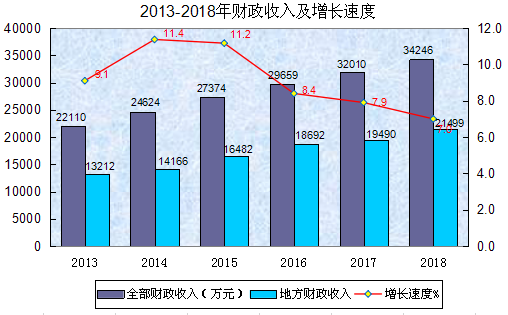 全年财政收入3.42亿元,比上年增长7.0%。公共财政预算收入2.15亿元,增长10.3%。公共财政预算支出18.98亿元,增长13.6%。