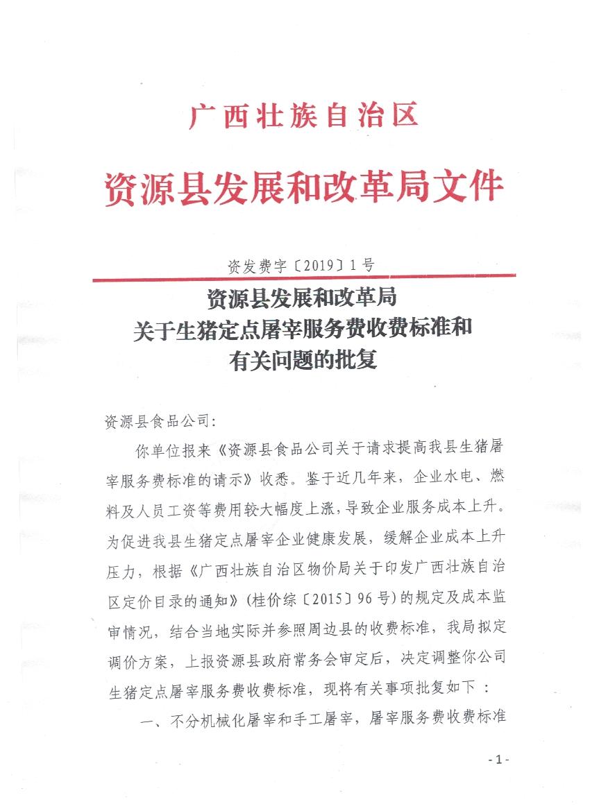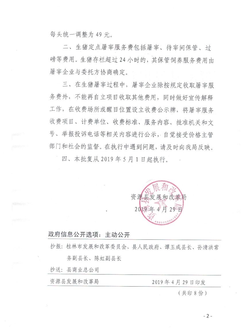 关于生猪定点屠宰服务费收费标准和有关问题的批复