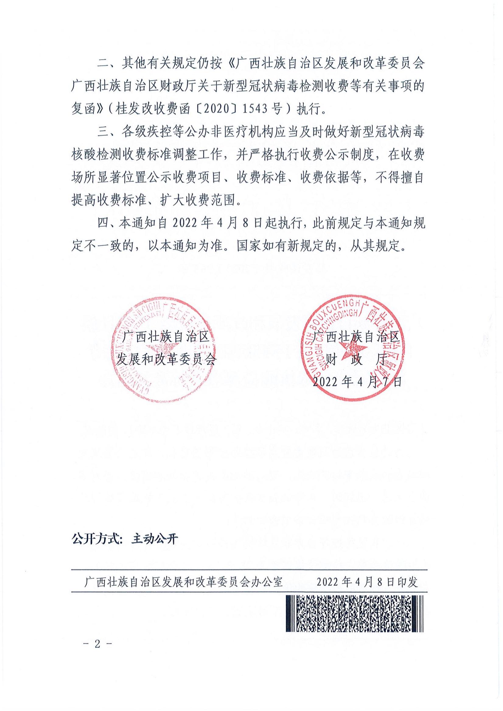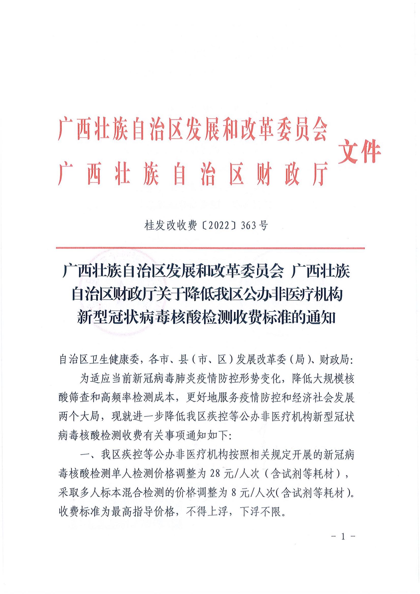 桂发改收费(2022)363号关于降低我区公办非医疗机构新型冠状病毒核酸检测收费标准的通知