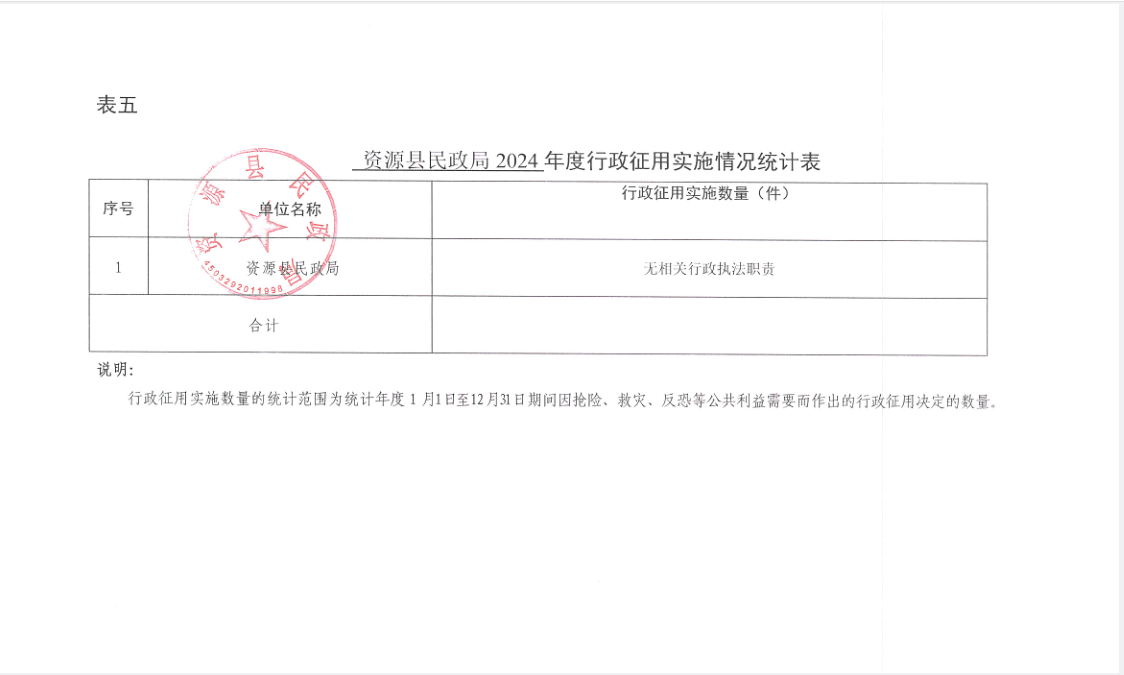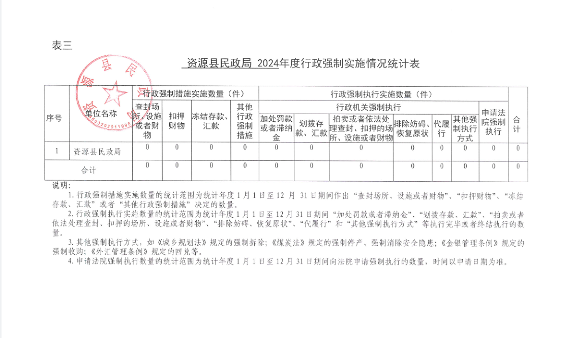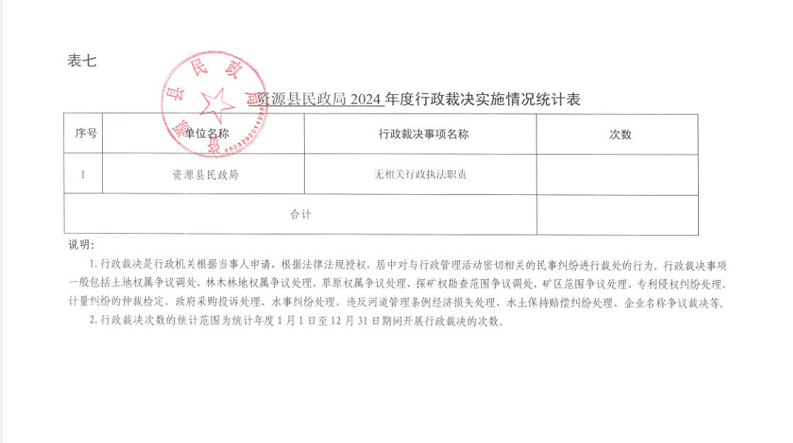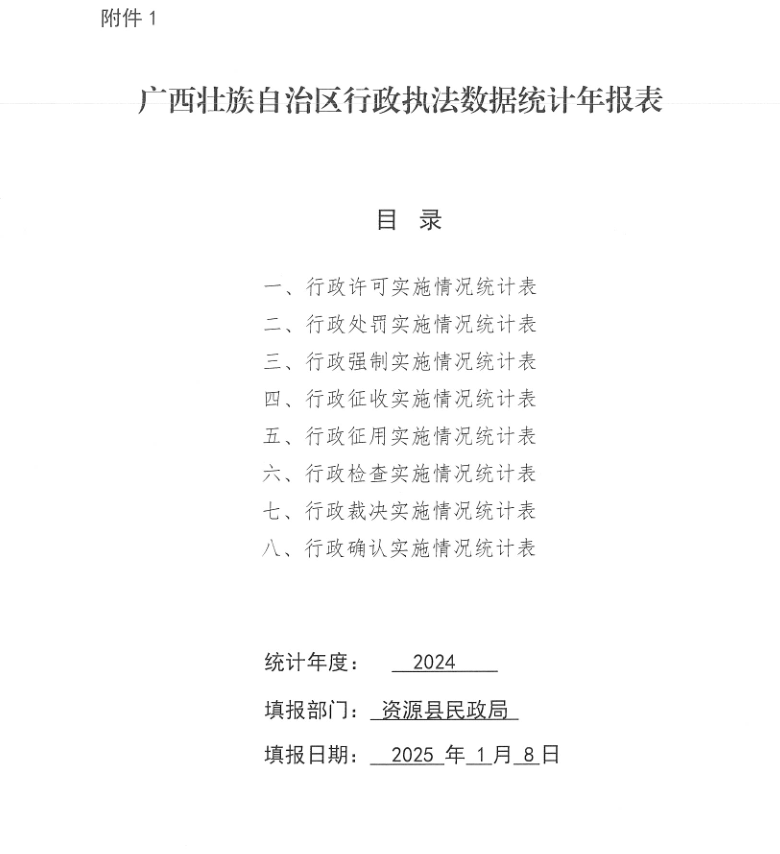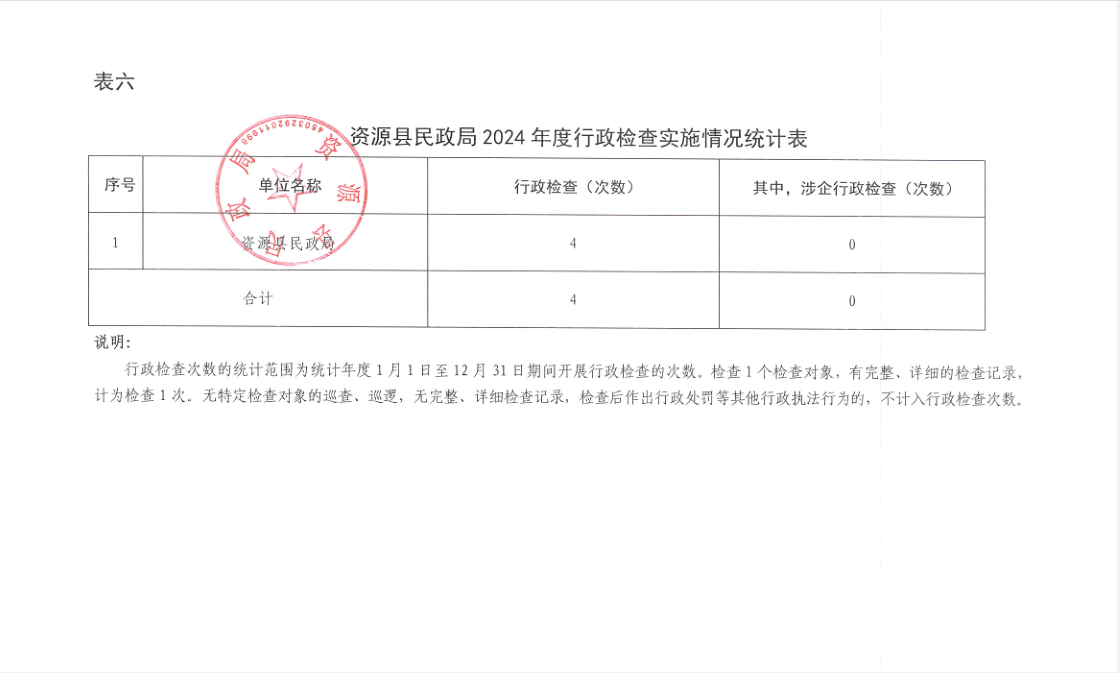 资源县民政局2024年度行政执法统计年报公示