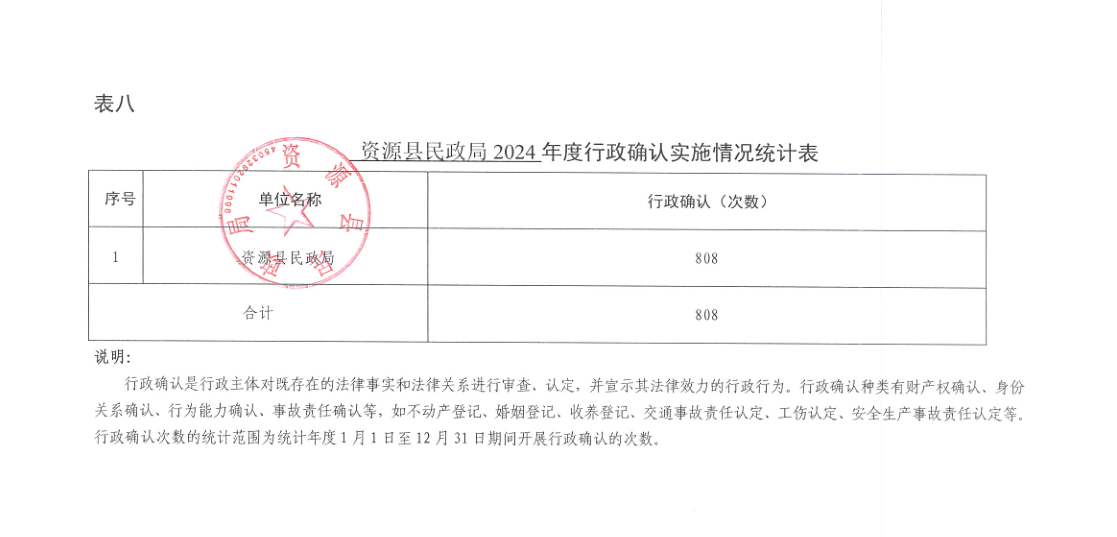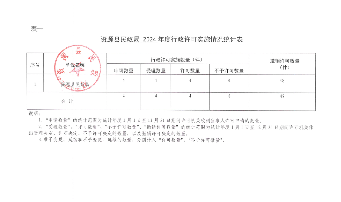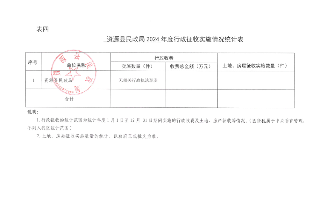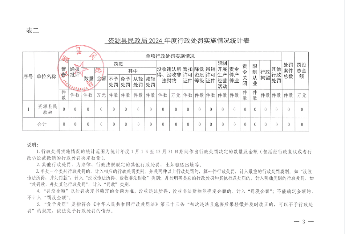 资源县民政局2024年度行政执法统计年报公示