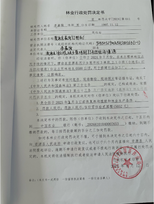 林业行政处罚决定书(李嘉强)