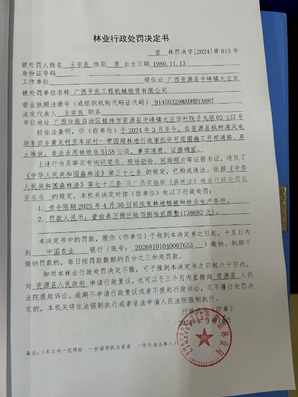 林业行政处罚决定书(王宗良)