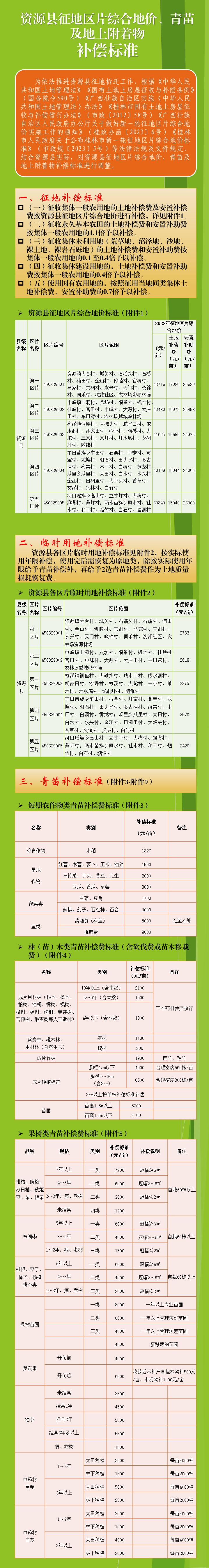 【一图读懂】资源县征地区片综合地价、青苗及地上附着物补偿标准解读