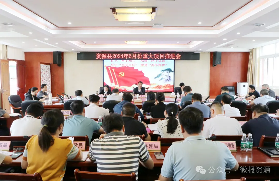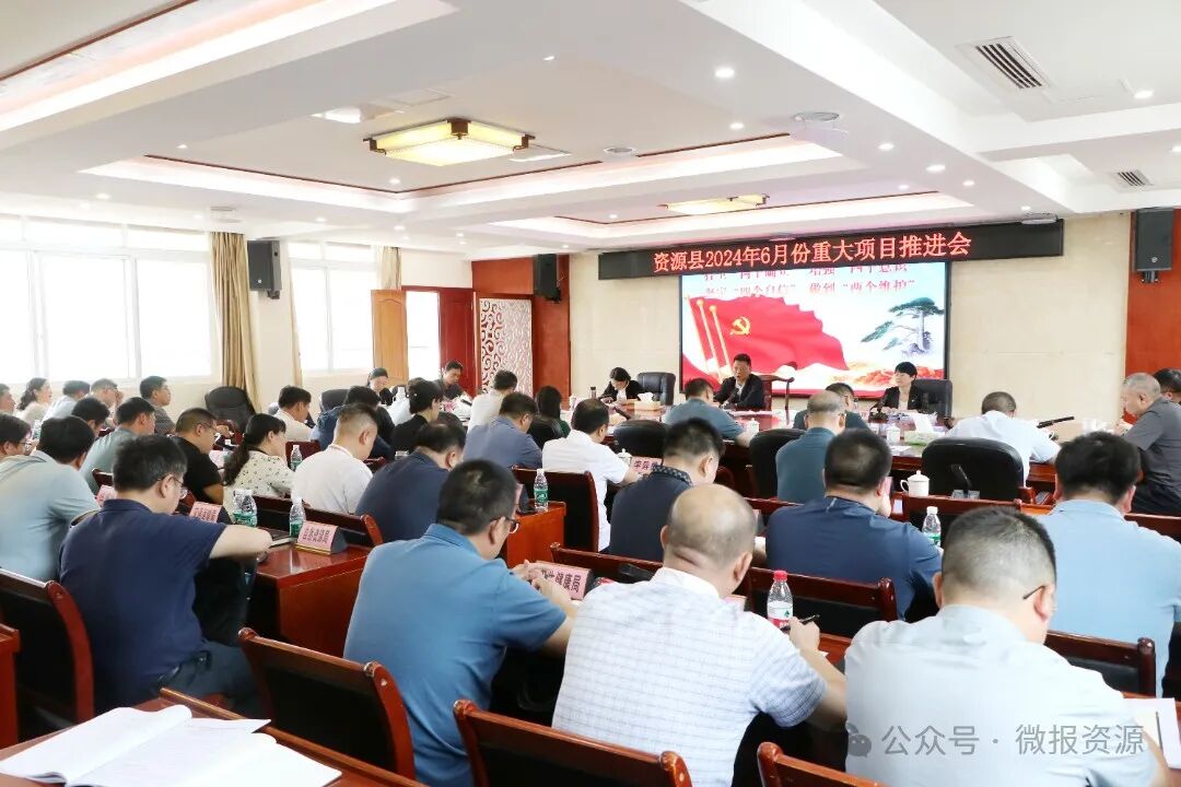 6月26日,资源县在县行政中心622会议室召开2024年6月份重大项目推进会,逐一研究解决项目推进过程中遇到的困难和问题,并安排部署下一阶段工作。