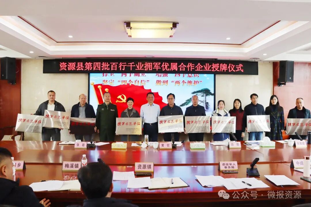 期间,黄钦、田勤、张振岩、张岩为10个第四批百行千业拥军优属合作企业授牌。