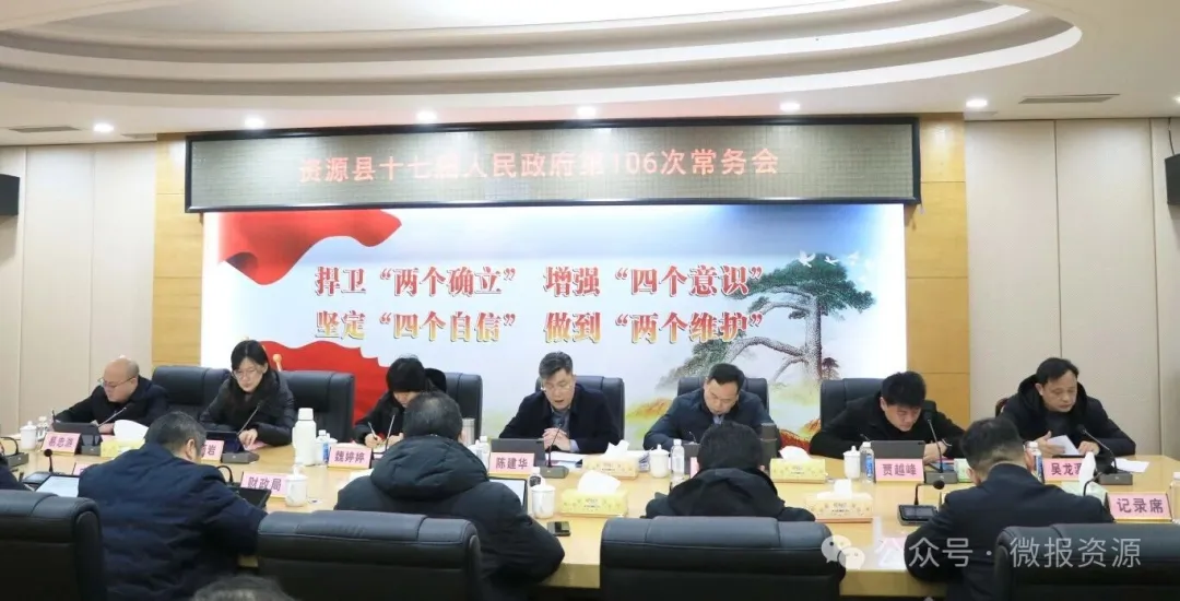 1月29日,资源县委副书记、县长陈建华在县行政中心318会议室主持召开县十七届人民政府第106次常务会。