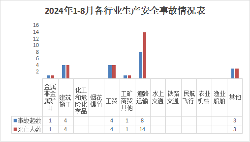 8月份接报生产安全事故起数1起、死亡1人、无受伤人数。