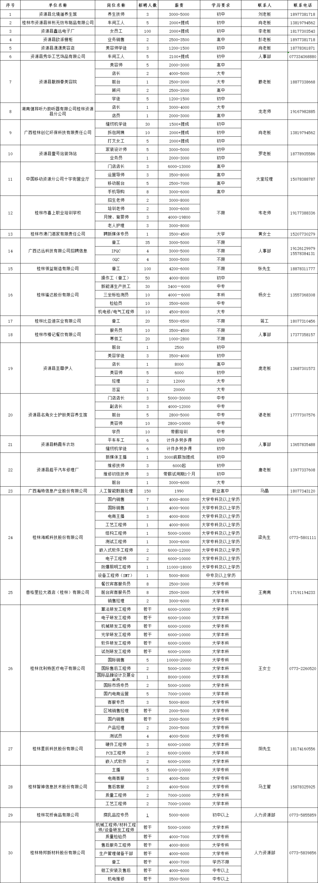 1、资源镇中心花园广场招聘会,参会企业30家,提供优质岗位超700个;