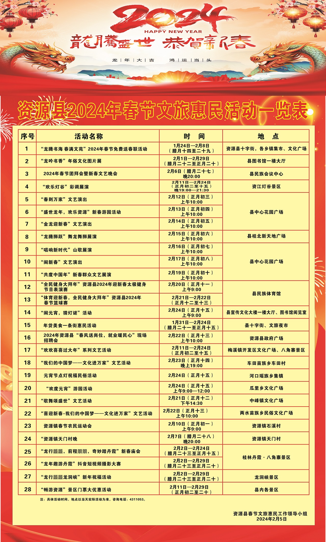 2024-02-07 16:55 来源:资源县春节文旅惠民工作领导小组 作者:资源县文化广电体育和旅游局