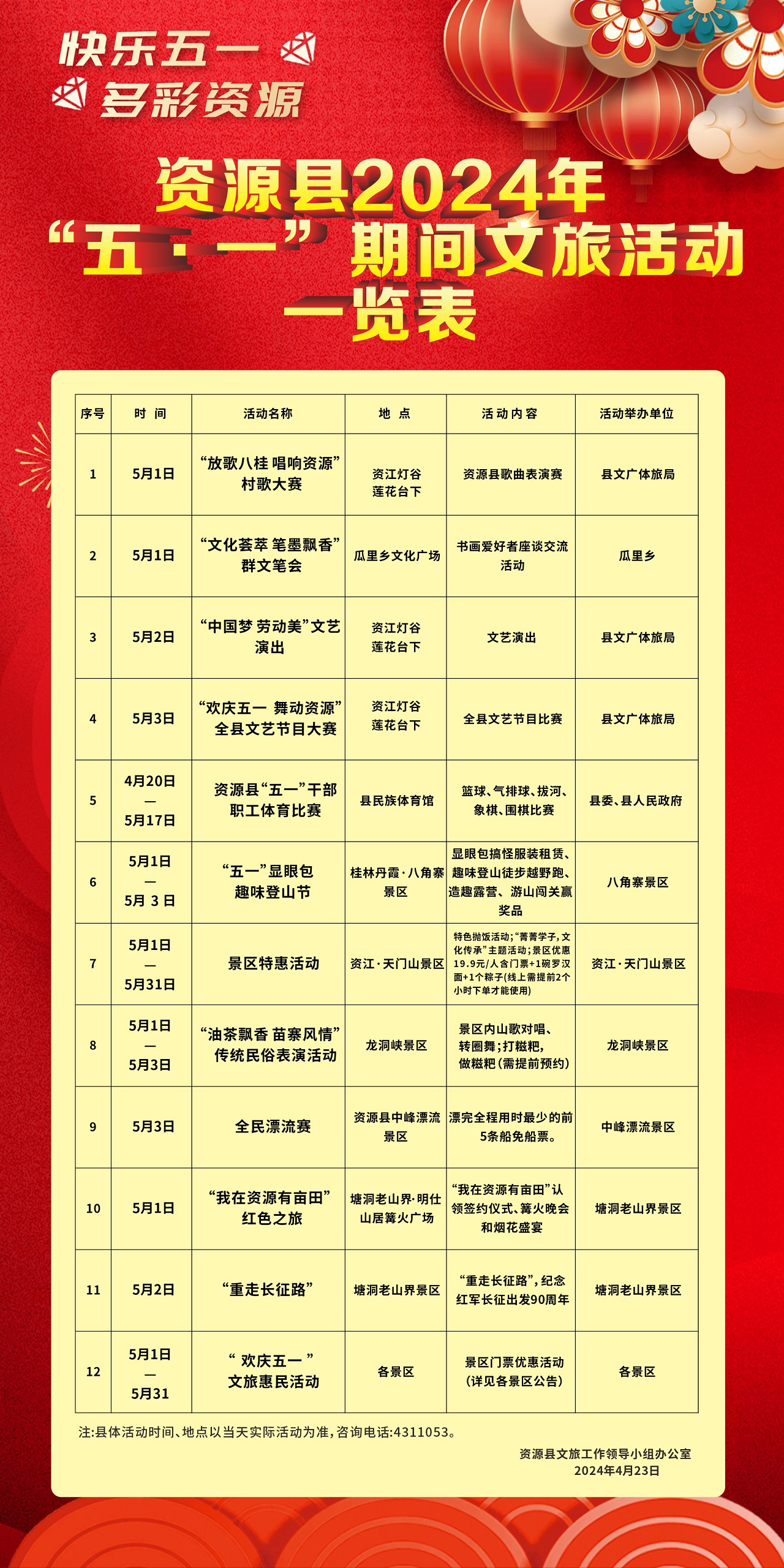 资源县2024年“五一”期间文旅活动一览表