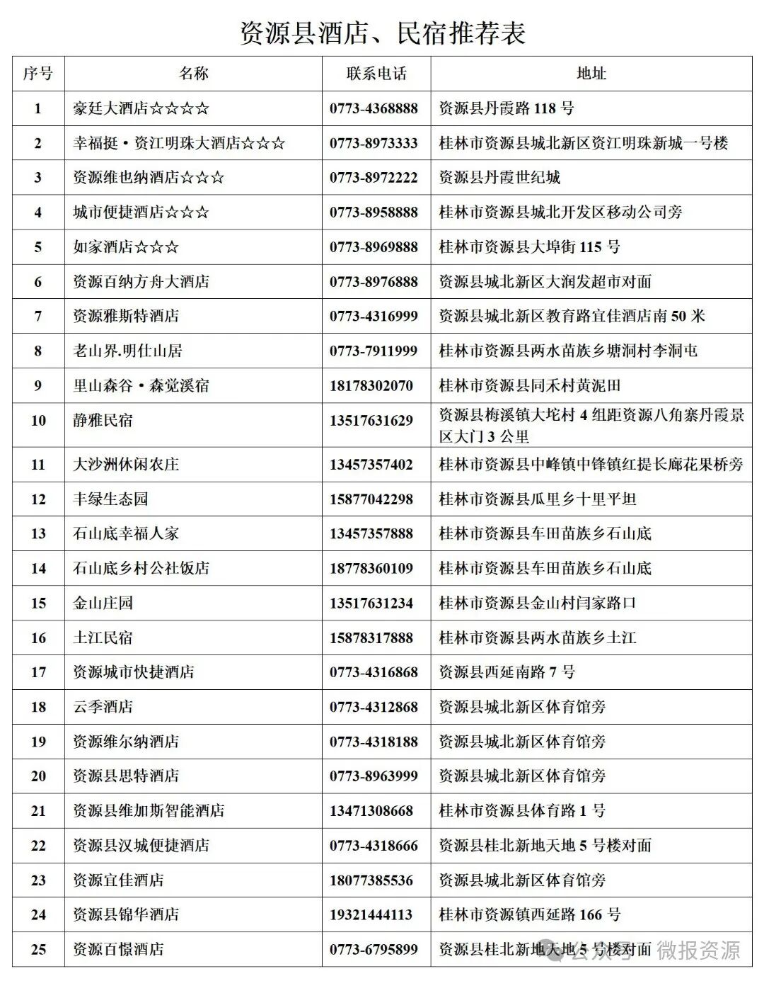 为加强体旅融合,让参赛选手们饱览资源县的秋日风光与人文景致,资源县各景区、住宿等企业推出资源半马参赛选手专属旅游福利。2024年11月21日至30日,选手凭参赛号码布或报名成功界面及本人身份证,即可享受低至半价的旅游福利。赶紧来看看都有哪些景区和酒店吧!