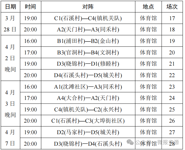 资源县2025年“篮朋友”大众联赛(资源镇赛区)交叉赛赛程表