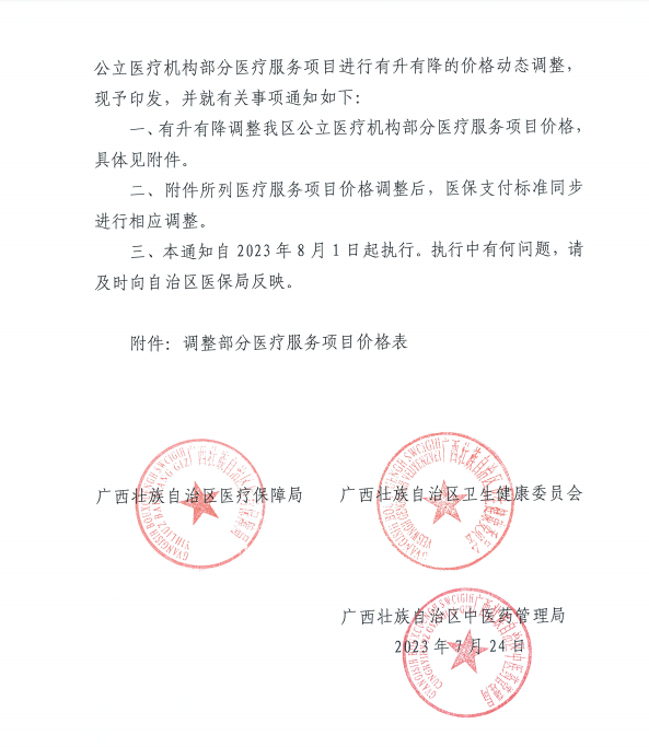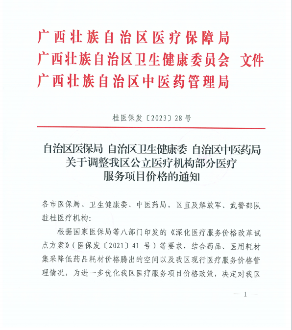 自治区医保局 自治区卫生健康委 自治区中医药局关于调整我区公立医疗机构部分医疗服务项目价格的通知(桂医保发【2023】28号)(2).zip
