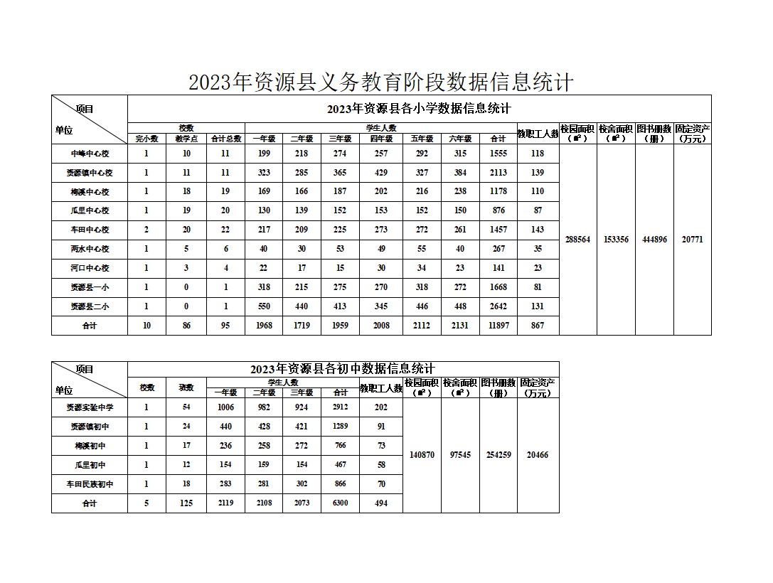 2023年资源县义务教育阶段数据信息统计.xlsx