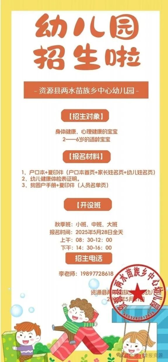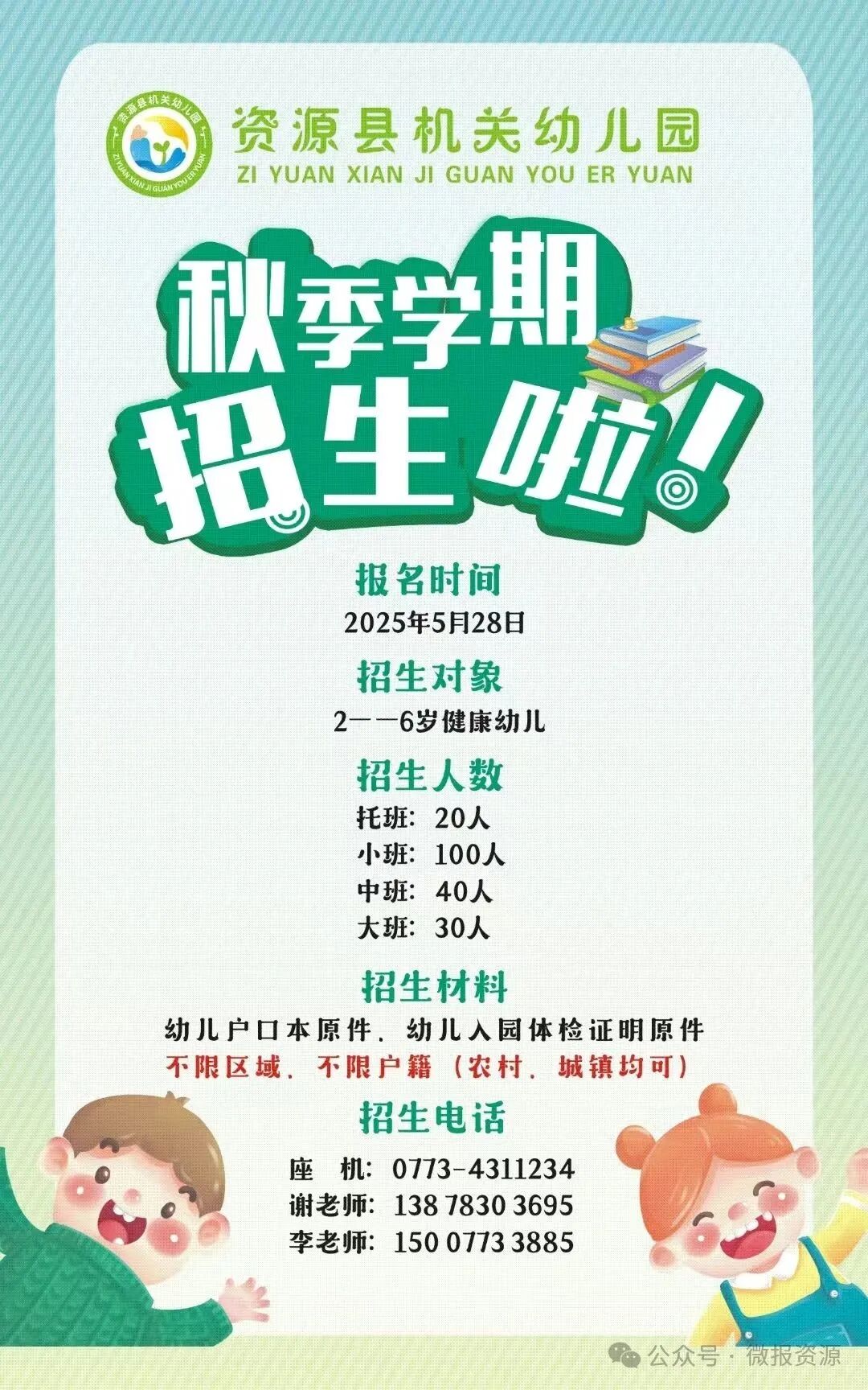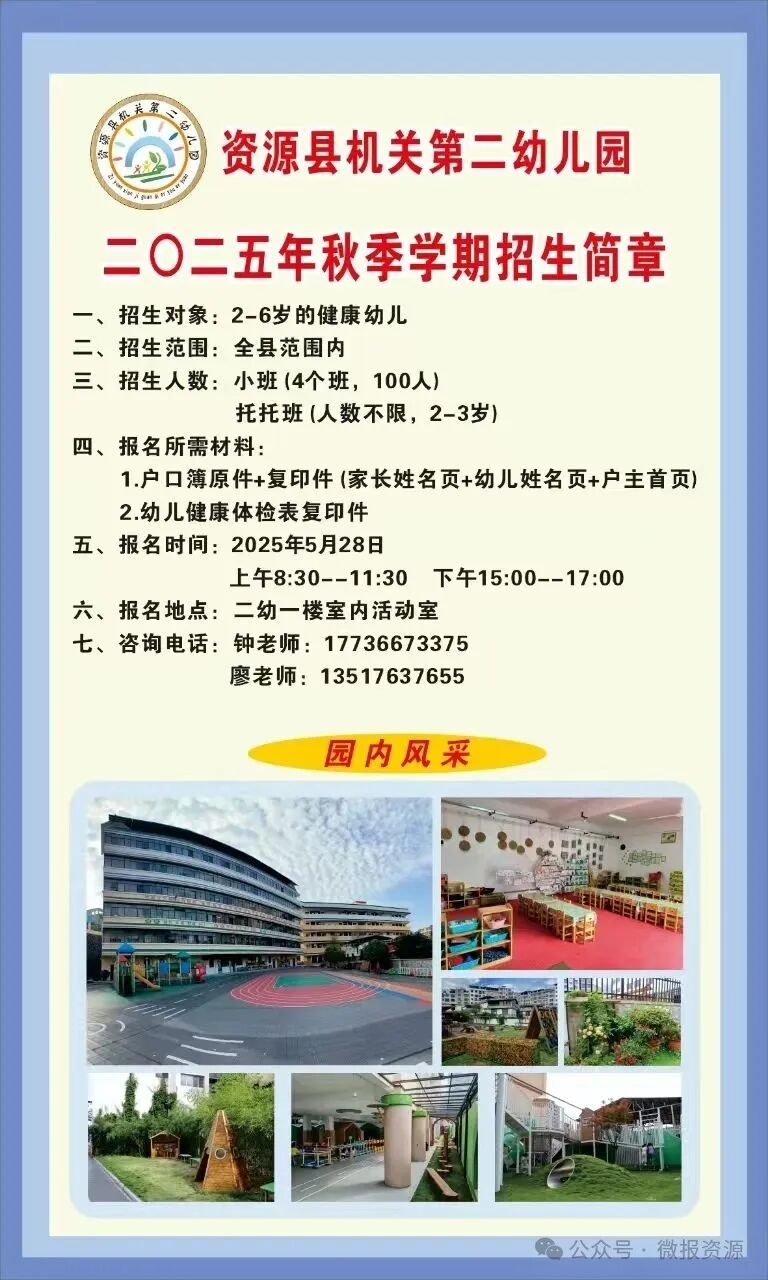 资源县公办幼儿园开始招生啦!