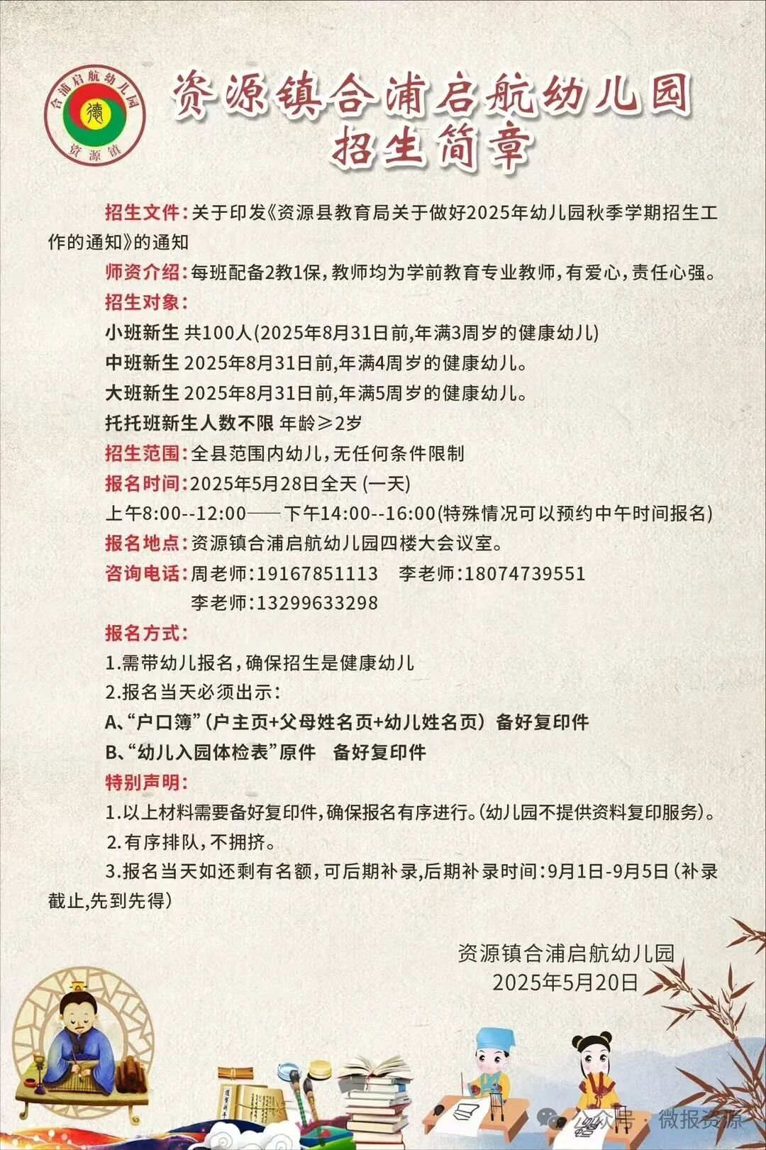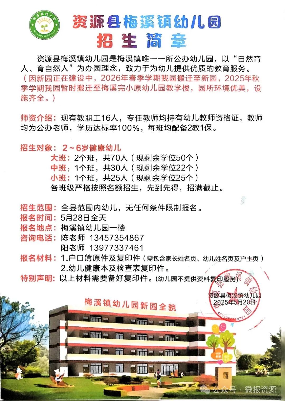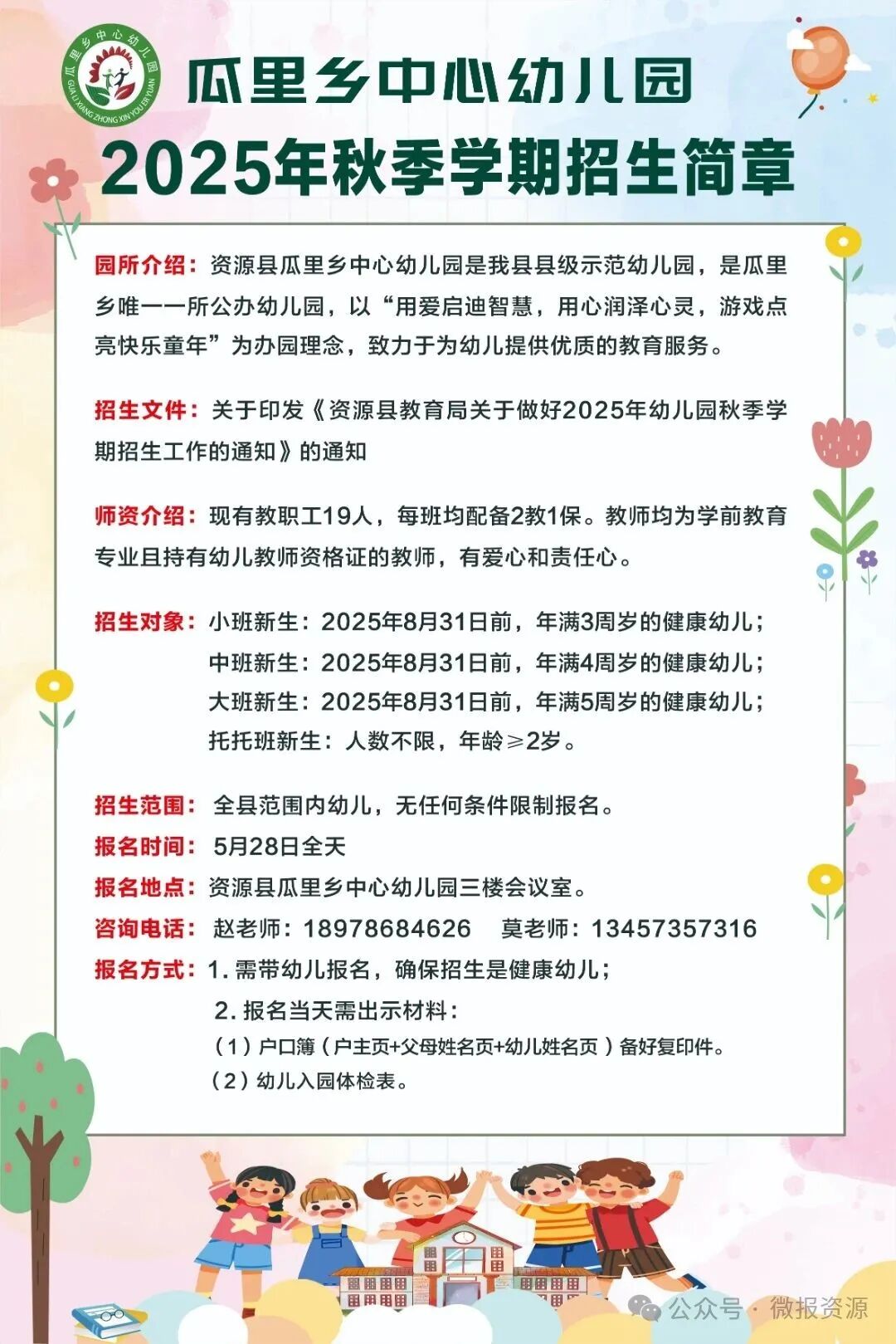 资源县公办幼儿园开始招生啦!
