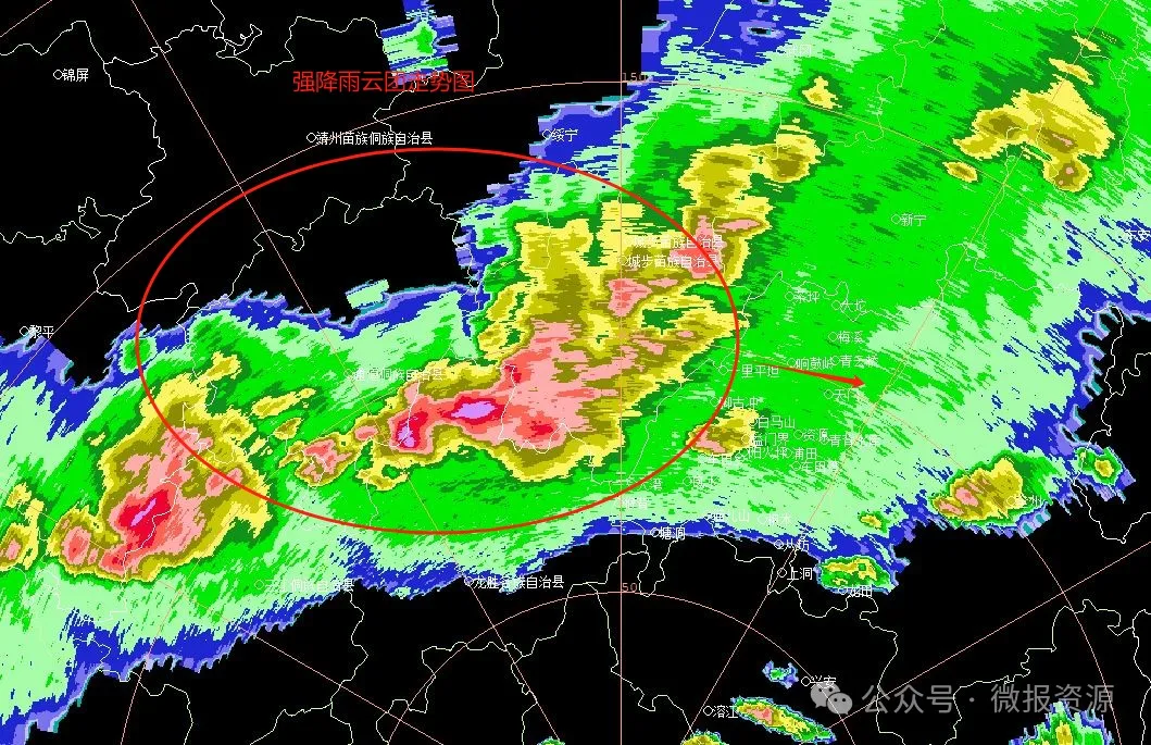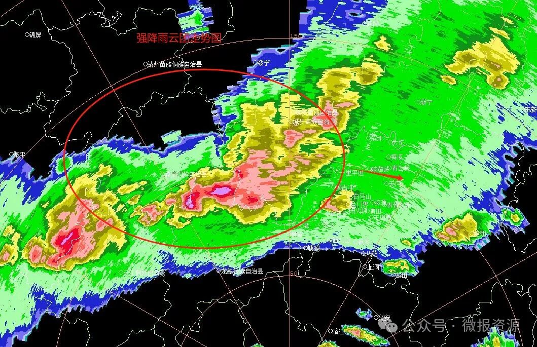 目前强降雨云团正逐渐靠近资源县,预计未来3小时,资源县各乡镇将出现50毫米左右的强降雨,并可能伴有雷电,山洪地质灾害气象风险大。