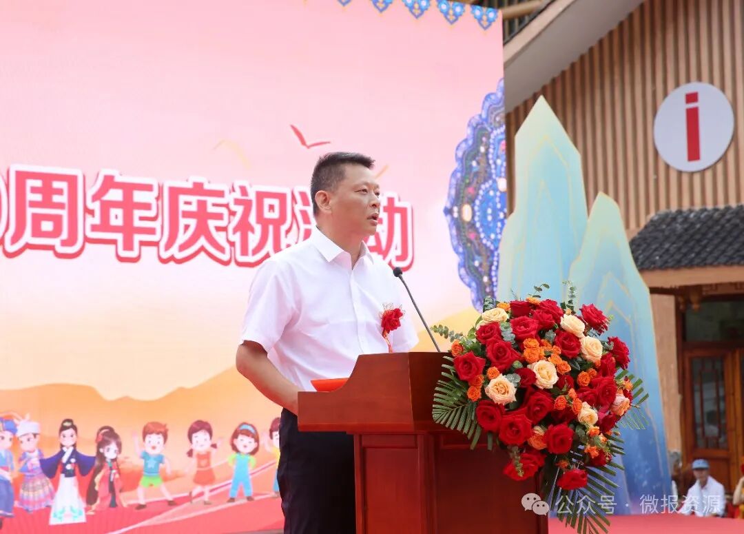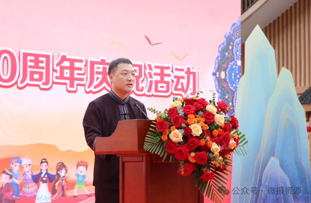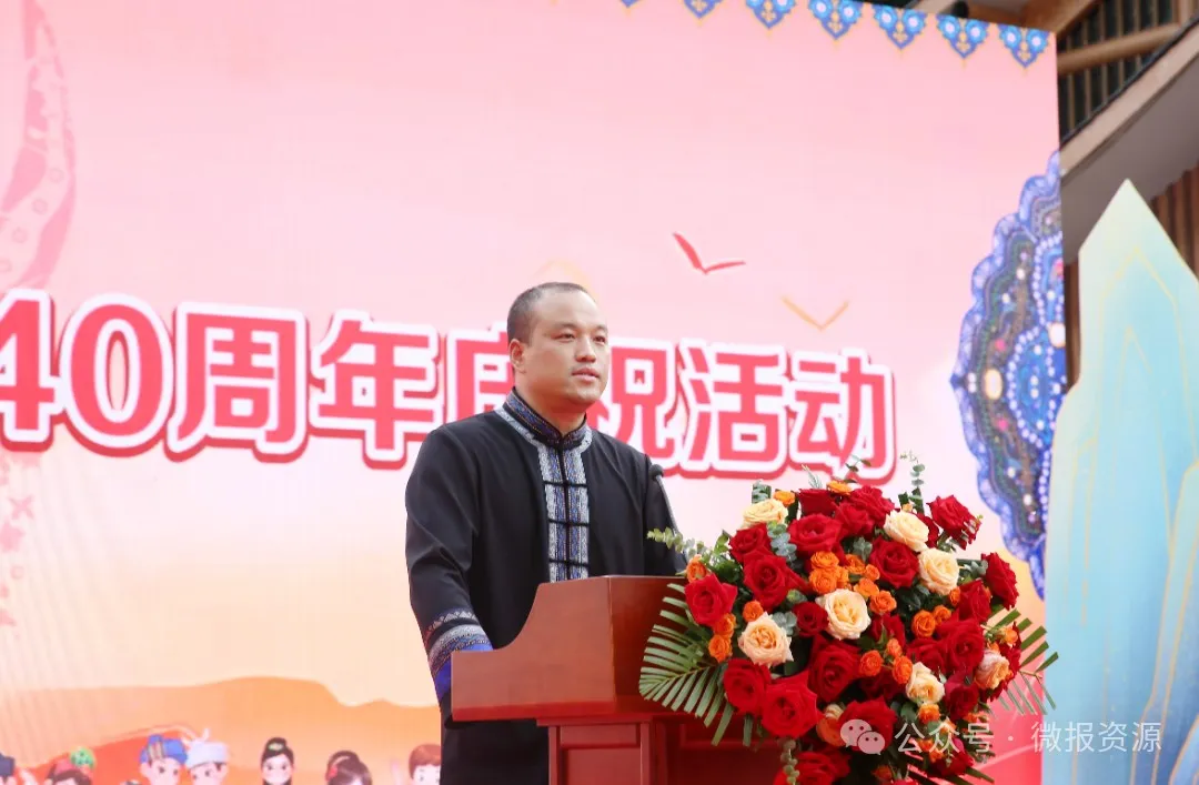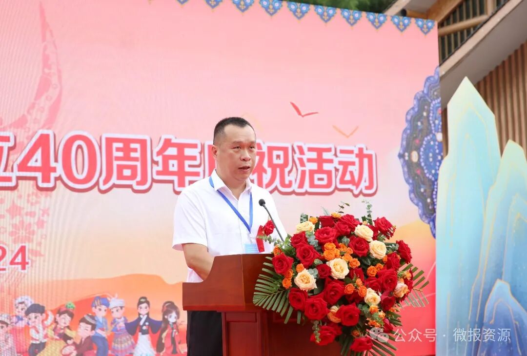 自治区祝贺团团长、自治区宗教团体服务中心主任唐卓代表自治区民族宗教事务委员会,向全乡2.85万各族人民表示热烈的祝贺和亲切的慰问!他说,1984年9月,在党的民族政策光辉照耀下,车田苗族乡经自治区人民政府批准成立,开启了各民族共同团结奋斗、共同繁荣发展的新征程。四十年来,车田苗族乡在各级党委、政府的领导下,以铸牢中华民族共同体意识为主线,坚持走中国特色解决民族问题的正确道路,推动经济社会各项事业蓬勃发展,取得令人瞩目的成就,经济发展、民族和睦、社会稳定,呈现出生机勃勃、欣欣向荣的景象。希望车田苗族乡各族干部群众始终坚持以习近平新时代中国特色社会主义思想为指导,深入贯彻落实党的二十届三中全会精神,完整准确全面学习贯彻习近平总书记关于加强和改进民族工作的重要思想,深入贯彻落实习近平总书记关于广西工作论述的重要要求,始终坚持生态保护与经济发展相统筹,进一步践行“绿水青山就是金山银山”理念;始终坚持保障和改善民生,不断巩固拓展脱贫攻坚成果,扎实推进乡村振兴;始终坚持铸牢中华民族共同体意识这条主线,促进各民族交往交流交融,不断谱写高质量发展新篇章,为奋力谱写中国式现代化广西篇章作出新的更大贡献!
