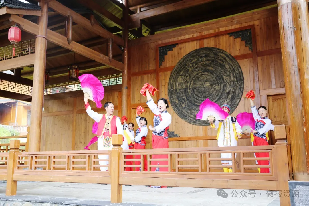 沧海桑田,岁月如歌。奋进四十年,同心筑梦,共同拥抱新时代,值得每一个车田苗族乡同胞骄傲。走进石山底,伴随着锣鼓声,两只雄狮跳跃翻腾,威风凛凛。树荫下、小溪边前来观看庆祝活动的村民特意盛装打扮,三三两两地聚集在一起,欢声笑语久久不息。风雨桥上的山歌、戏台里的扇子舞、广场上的竹竿舞把苗乡的精彩日子展现得淋漓尽致。