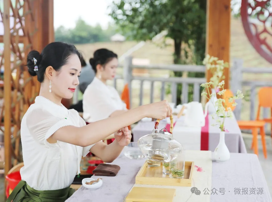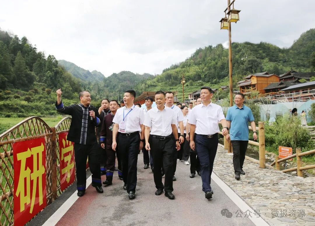 ▲各方嘉宾在云里茶乡田园综合体参观车田苗族乡农旅产业、产品展示