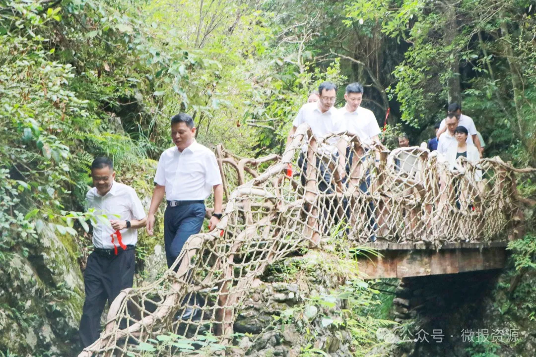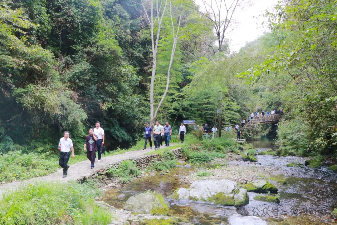 ▲各方嘉宾在石山底龙洞峡沿线徒步观光