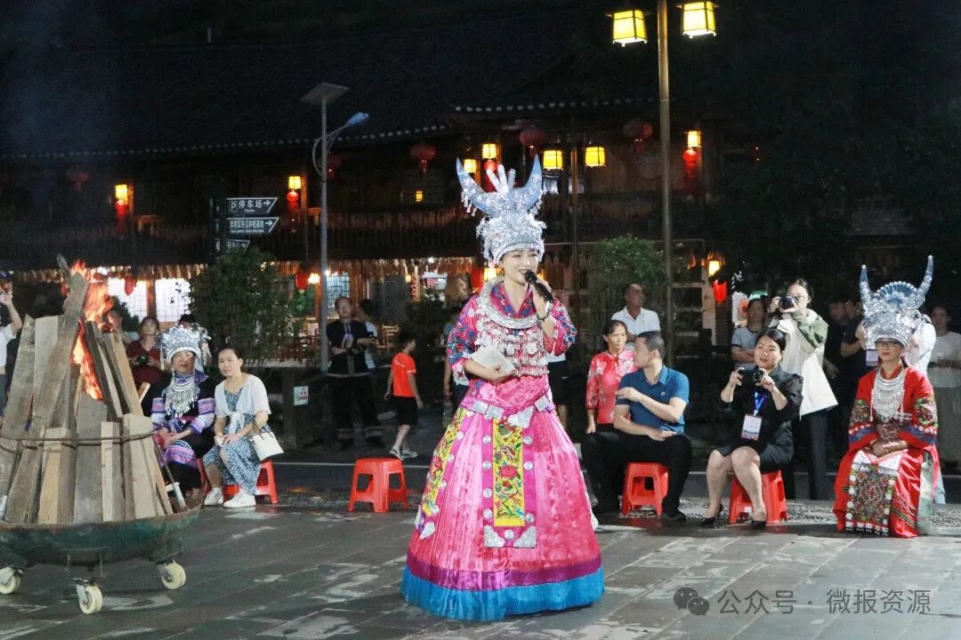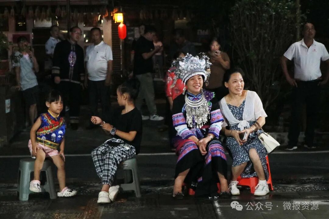 “咦哟嘿……”夜幕降临,一阵微风吹来,带着丝丝凉意,大家围坐在凉亭内,十分惬意,嘹亮的苗乡山歌环绕在耳边,现场气氛热烈,掌声雷动。