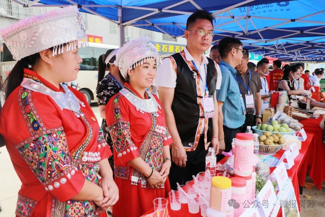 庆祝大会前,自治区民宗委祝贺团、桂林市代表团、资源县代表团以及各方嘉宾走进车田苗族乡农贸市场,琳琅满目的农产品让人目不暇接,辣椒、西红柿、黑皮冬瓜、冷水鱼、富硒稻米……香甜多汁的水果、颗粒饱满的谷物、绿色有机的蔬菜、精心加工的特色食品,每一件都承载着当地人民的辛勤汗水和智慧结晶,也展现了车田苗族乡农业产业的蓬勃生机与独特魅力,赢得大家的一致好评。