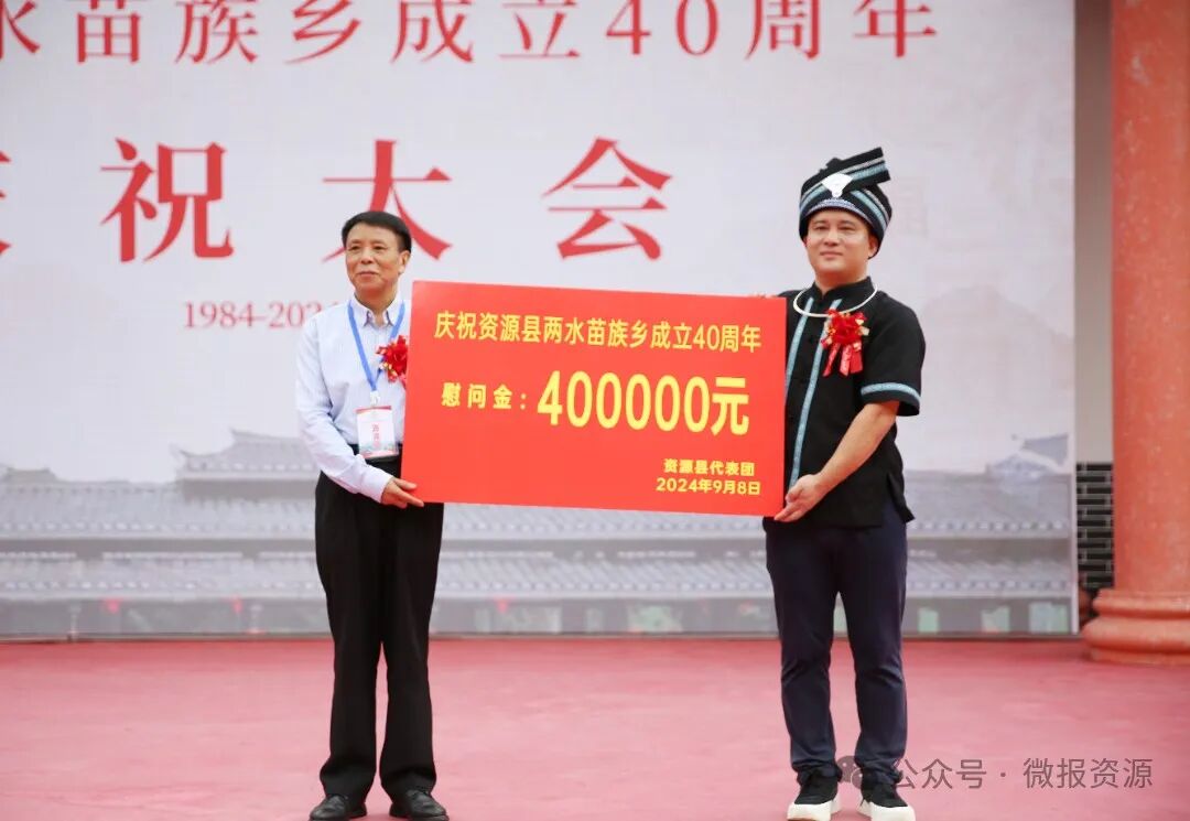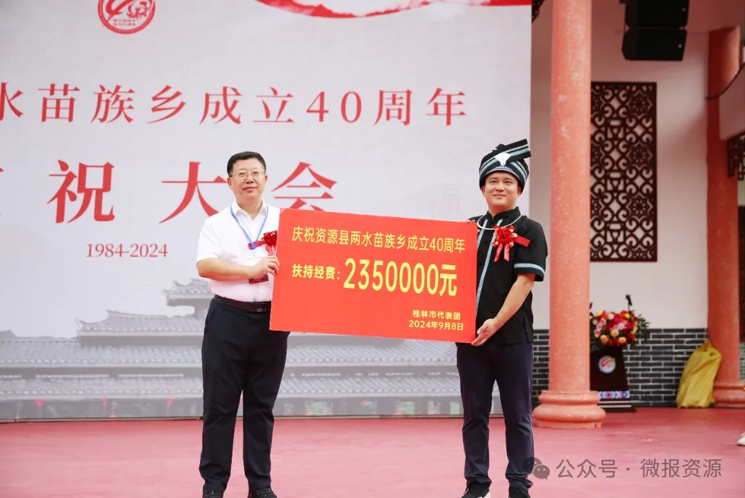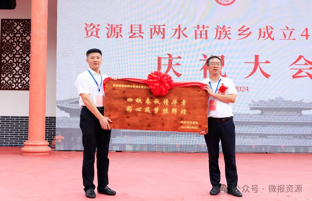 9月8日,资源县两水苗族乡成立40周年庆祝大会在该乡同心广场盛大举行。自治区、桂林市、资源县等各方来宾,怀着诚挚的祝福,与苗乡同胞齐聚一堂,共同见证这一历史时刻,携手奏响了一曲盛世欢歌。