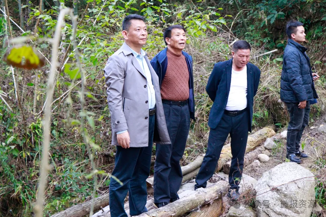 ▲资源县委书记黄钦在瓜里乡金江村石屋水屯调研农文旅康养融合发展、乡村振兴等工作。县人大常委会主任陈育勤陪同调研