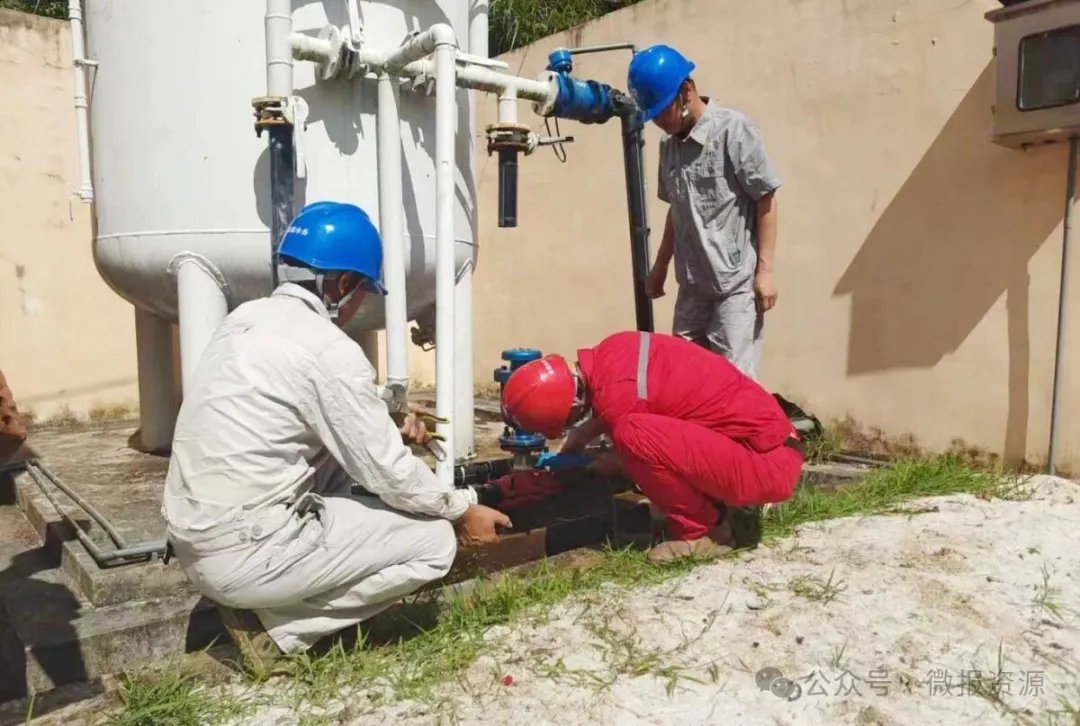 此前,两水苗族乡部分供水区域,尤其是地势较高位置,在用水高峰时常面临“断水”困扰,雷雨天气下的水质波动更是让群众忧心。面对群众的急难愁盼,资源供水(乡镇)公司党支部迅速行动,党员技术骨干牵头组成攻坚小组,深入一线精准诊断出两大“病灶”:引水管径偏小,导致供水能力不足,以及水厂净化设备老化,工艺滞后难御原水波动。