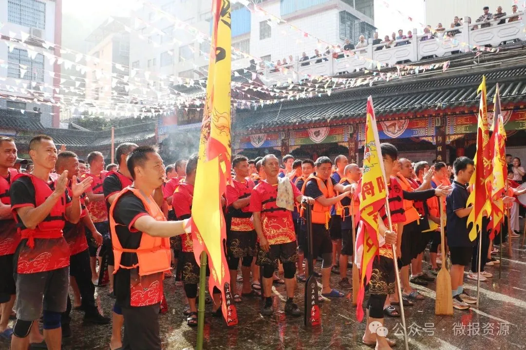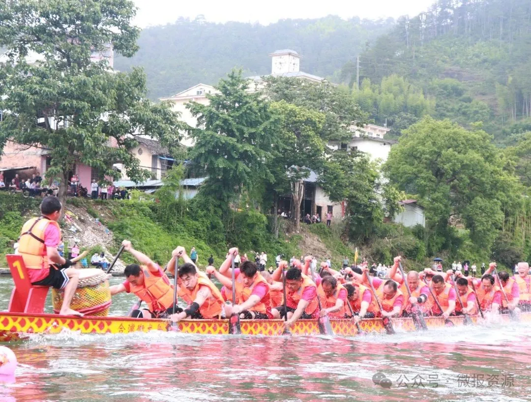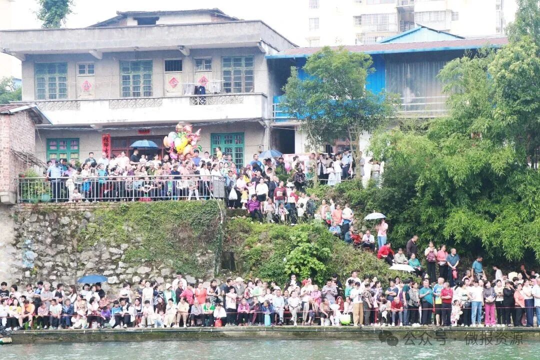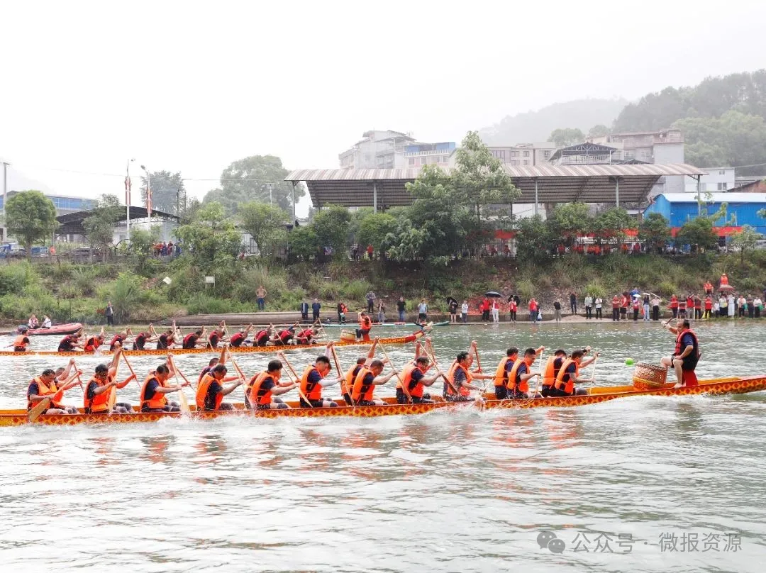 8支来自周边村镇的龙舟队伍齐聚在资江沈滩村江段,鲜艳的龙舟披红挂彩,蓄势待发。随着发令声响,桨手们动作整齐划一,伴随着震耳欲聋的鼓点和岸边如潮的呐喊,龙舟如离弦之箭破开水面,奋力向前冲刺。每一次整齐划桨都凝聚着团队协作的力量,每一次逆流而上都彰显着拼搏进取的精神,健儿们激情四射,上演了一场速度与力量、协作与意志的精彩对决。清澈的漓江源头之水被激昂的斗志搅动得沸腾起来。