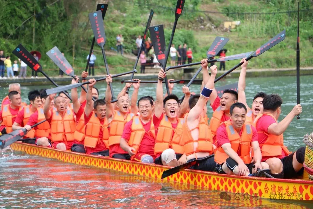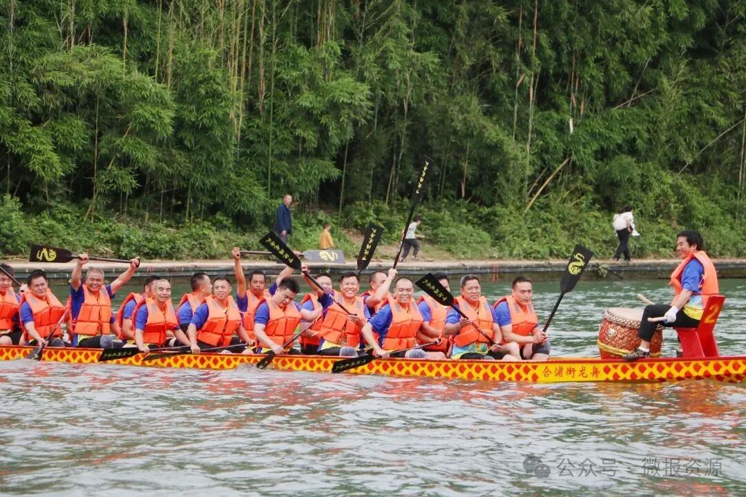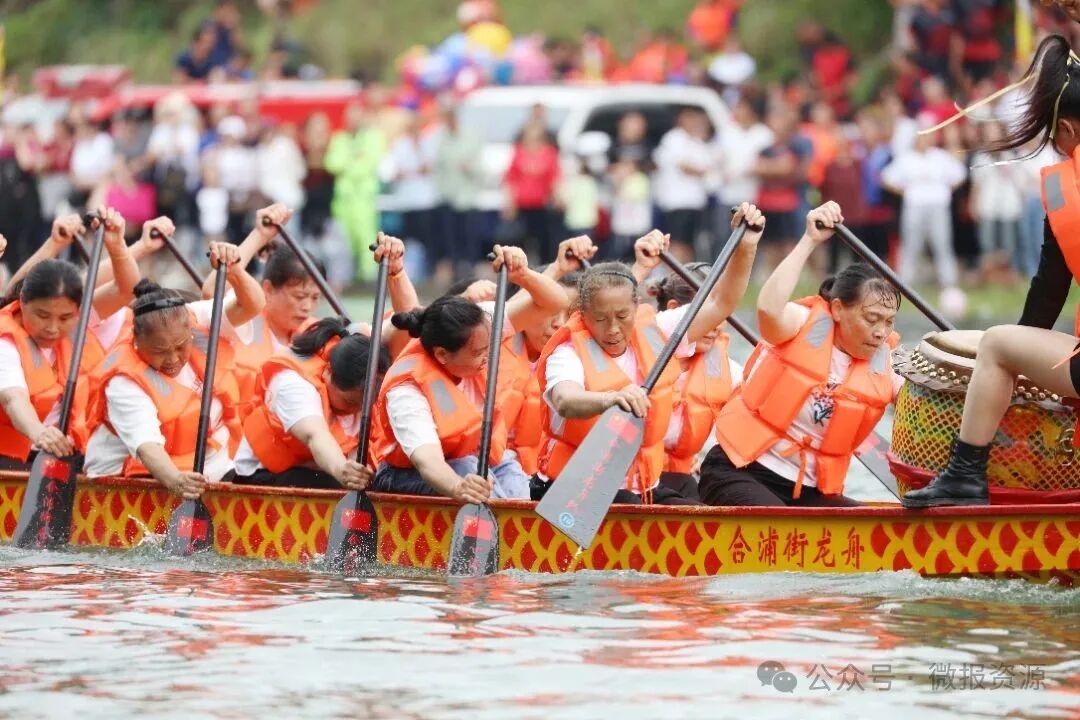 “鼓声三下红旗开,两龙跃出浮水来。棹影斡波飞万剑,鼓声劈浪鸣千雷。”合浦街龙舟赛不仅是一场传统体育竞技的盛会,更是对端午民俗文化的深情诠释与奋力传承。端午节在资源人民的心目中占有重要地位,赛龙舟寄托着风调雨顺、平安吉祥的美好祈愿;岸边飘散的粽叶清香,艾草的独特芬芳,交织着浓浓的乡情与节日氛围。