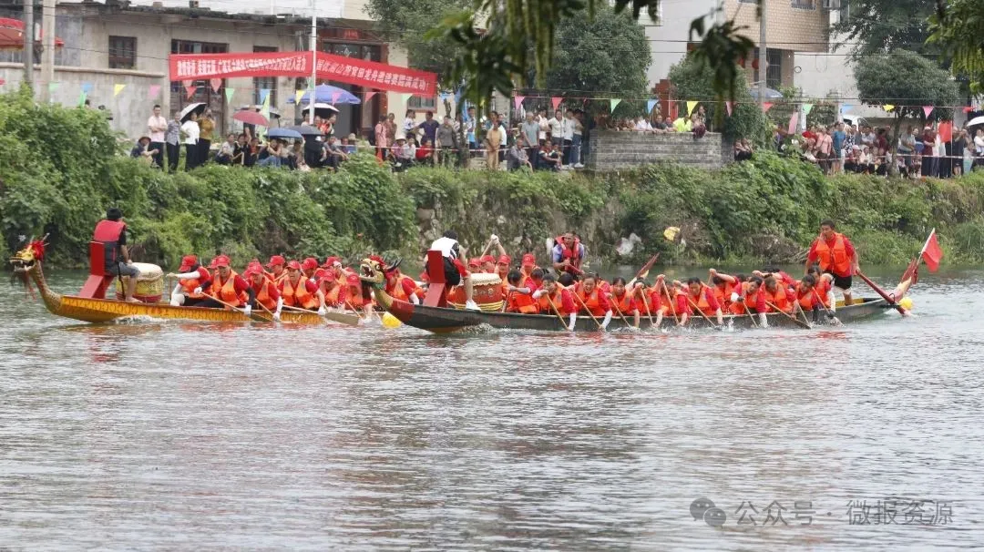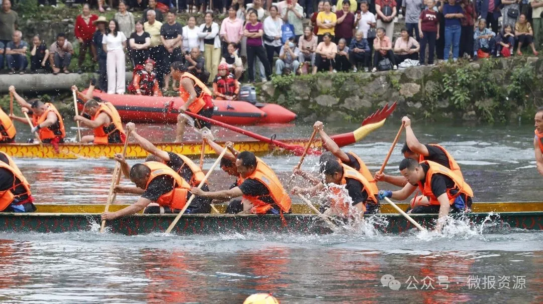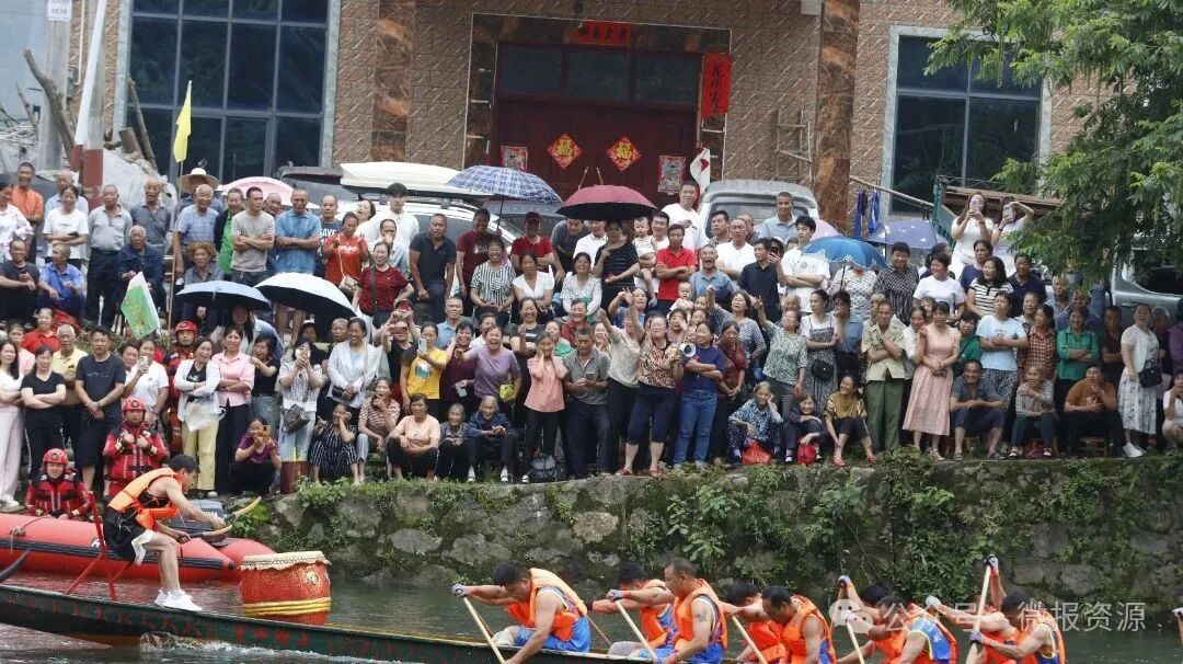 6月13日上午七点半,资源县中峰镇官田村官田老街后的河道上迎来了一场盛大的体育文化盛宴——龙舟邀请赛,吸引了来自周边村落的14支男子队、6支女子队共20支龙舟队同场竞技,为现场观众带来了一场扣人心弦的水上较量。