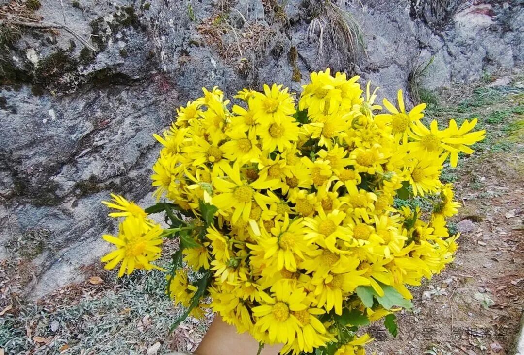 不需要复杂的工具,仅凭一双灵巧的手、一个结实的袋子,便能将野菊花尽数收入囊中。山边的菊花往往最为饱满鲜艳,采摘时也需格外小心。人们凭借对地形的熟悉,在确保安全的前提下,轻轻摘下那盛放的花朵,不一会儿,袋底便铺上了一层金黄。
