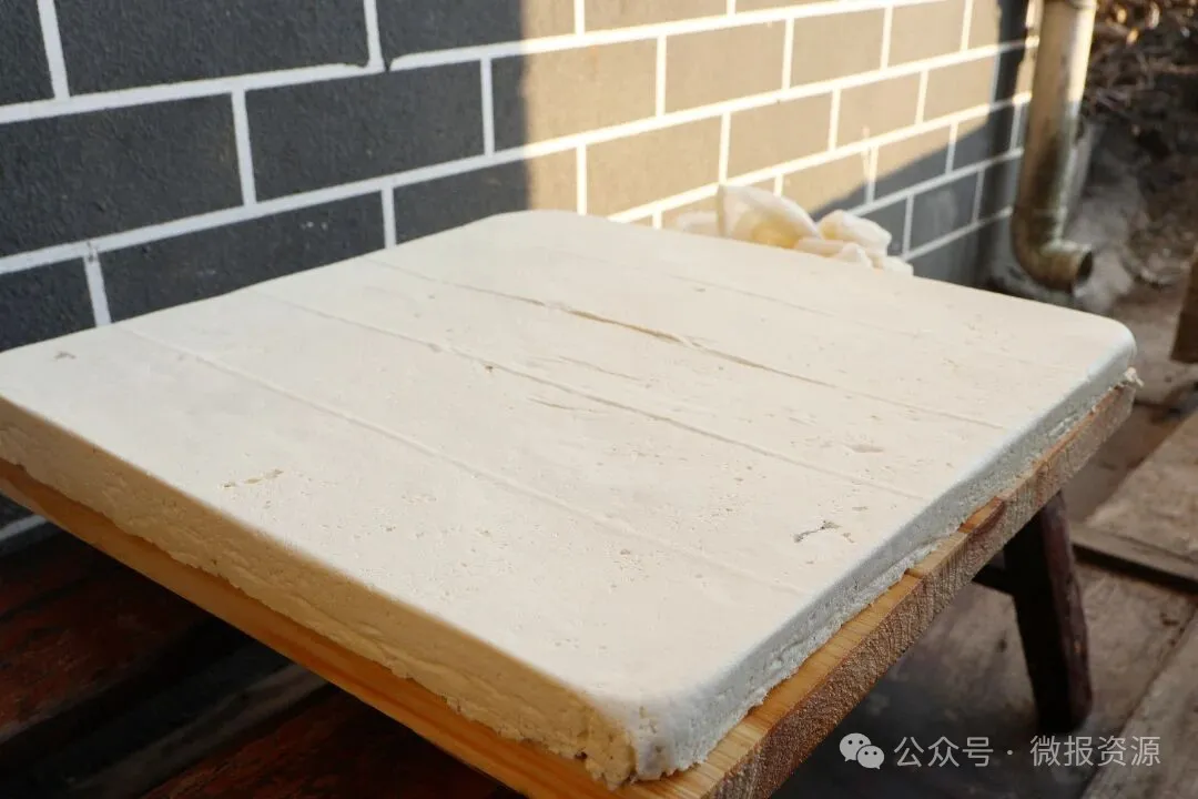 院坝里,阳光慢慢爬高,驱散了冬月的寒意。把豆腐切成均匀的方块,整齐摆放在筛子上,搁在通风处晾着——冬月天凉,这样能让豆腐表层微干,更易存放。