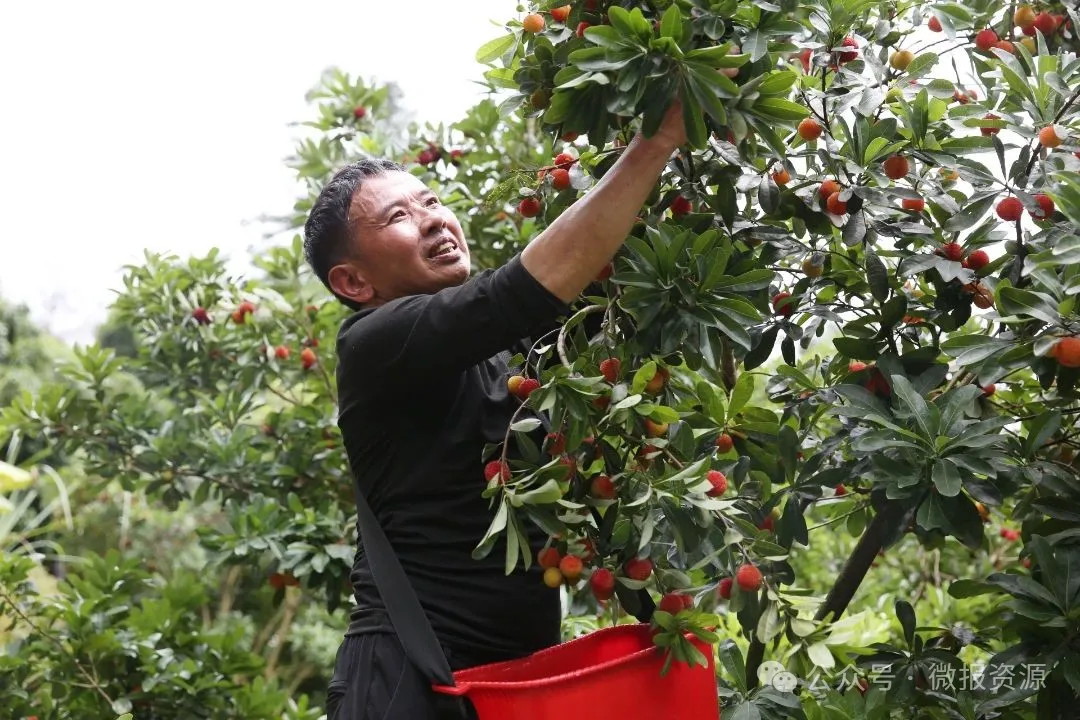 和平村平均海拔600米,气候湿润,昼夜温差大,得天独厚的自然环境孕育出的杨梅果大肉厚、汁多味甜。近年来,在当地政府的引导和支持下,果农杨盛友积极发展杨梅产业,将种植杨梅发展成为本地农户“庭院经济”发展模式,不断扩大种植规模,提升果品质量。一颗颗红艳的杨梅,不仅承载着村民们对美好生活的向往,更见证着这个苗族村寨在乡村振兴道路上的坚实步伐。