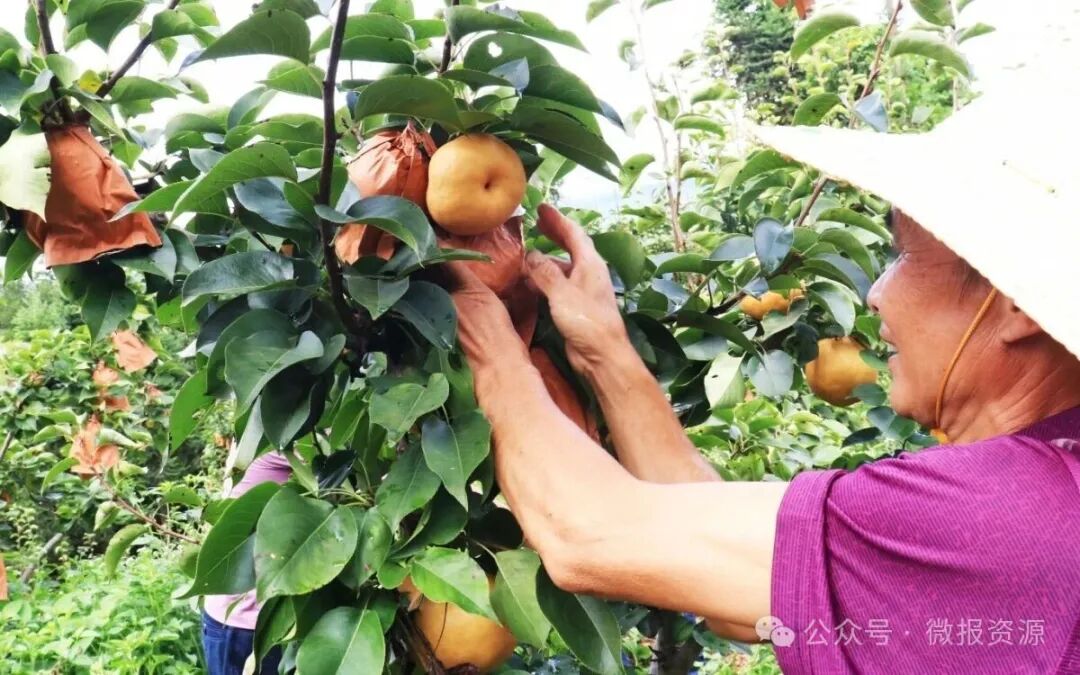 “今年雨水和阳光都合适,梨子长得特别好,个头大、甜度高。”村民黄佑武一边说,一边利落地将黄梨摘下,轻轻放入筐中,避免果实碰伤。他动作熟练轻柔,每一处细节都透露出对果实的珍惜。