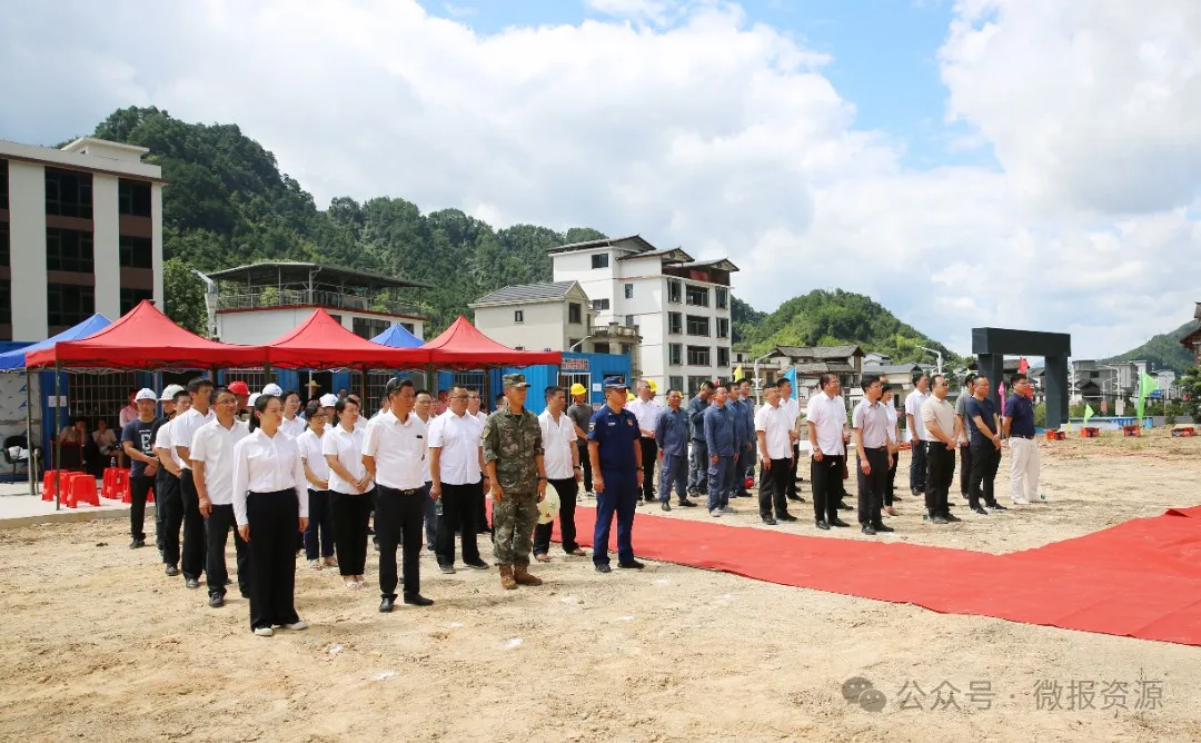 资源县政府办、发改、公安、自然资源、住建、消防救援大队、武警中队等县直有关单位及资源镇、中峰镇相关负责人,资源供电公司相关负责人参加开工仪式。
