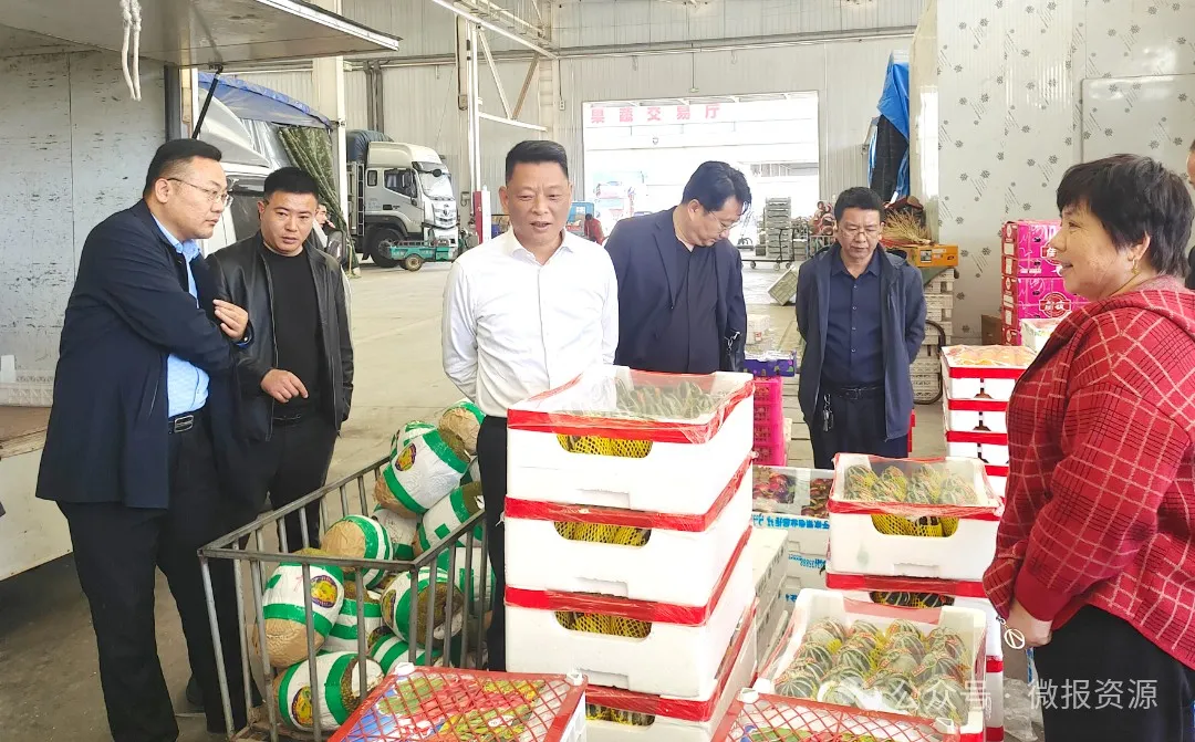 ▲资源县委书记黄钦带队在水发渤海国际农产品交易中心参观学习。县人大常委会主任陈育勤陪同参观