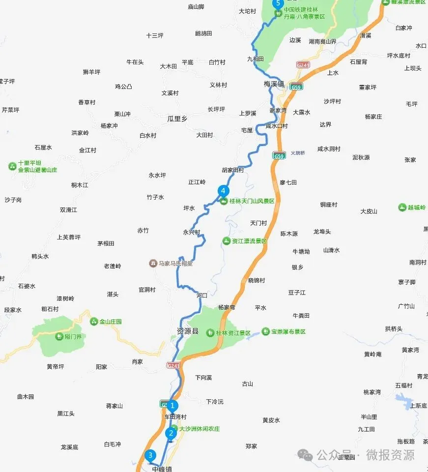 资源县长征国家文化公园(广西段)——塘洞景区——老山界·明仕山居森林康养基地——前往龙胜