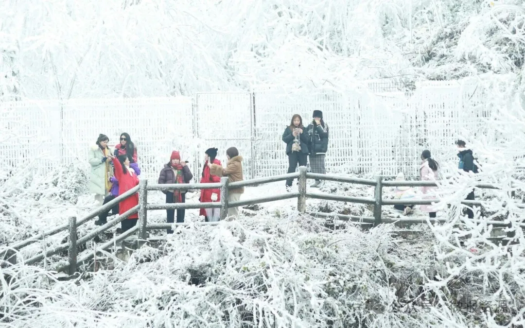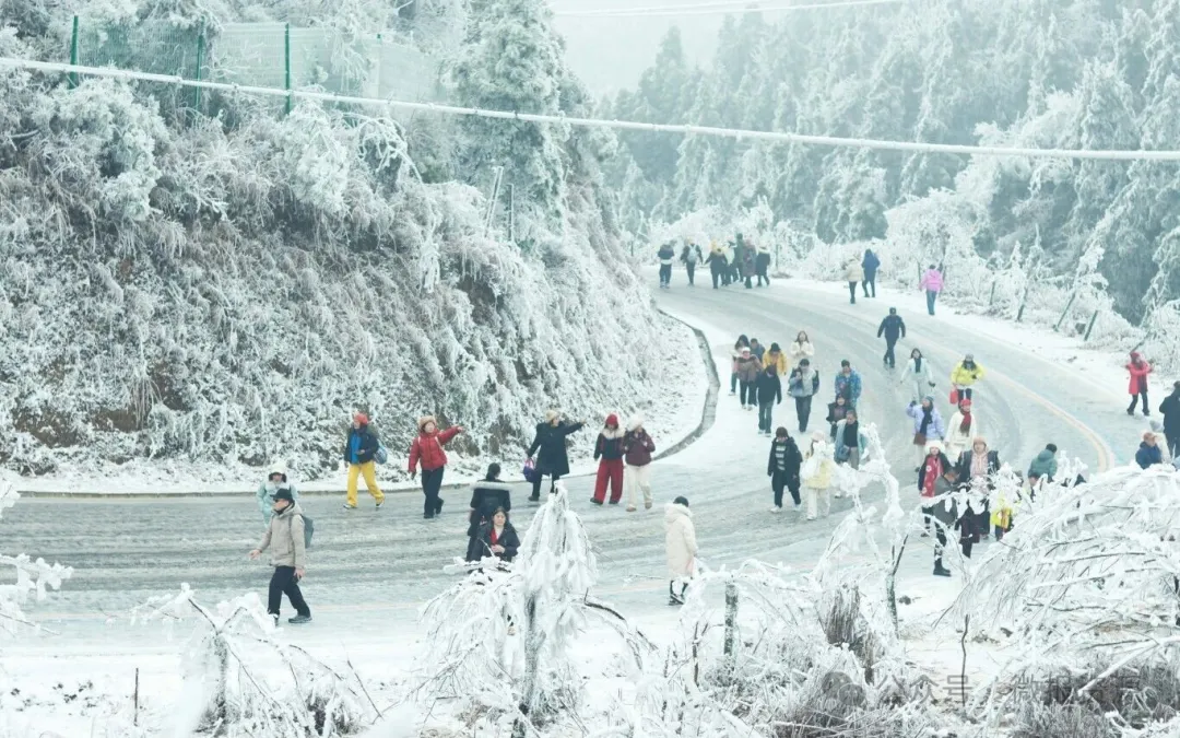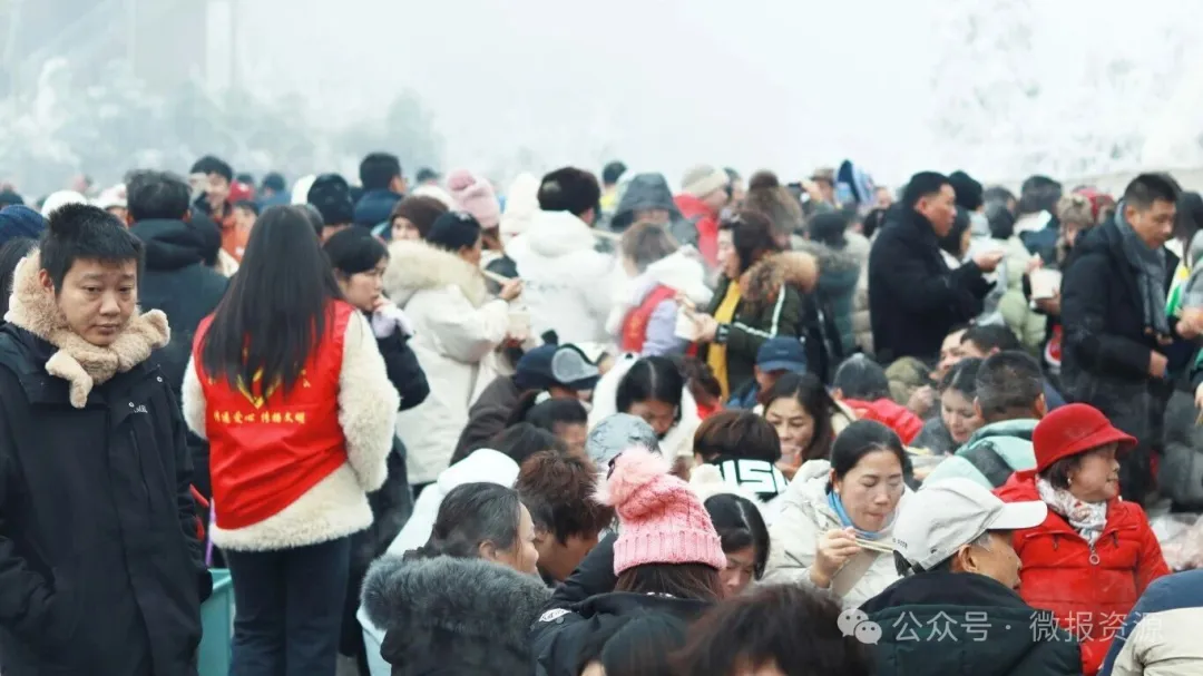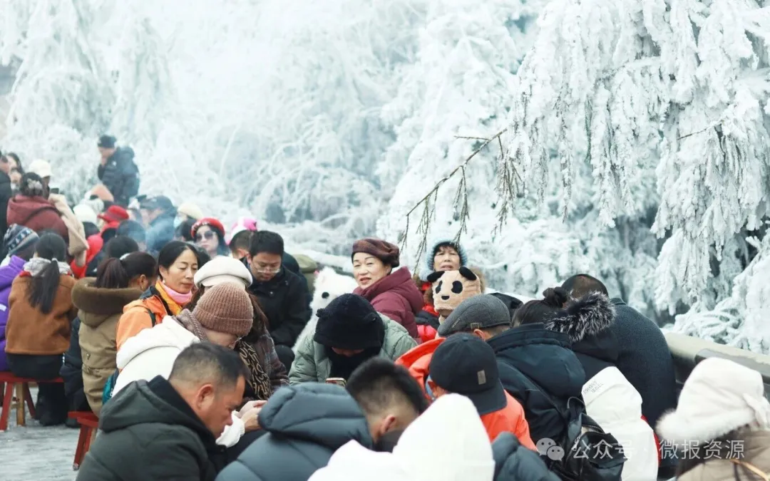 1月23日,资源县隘门界雪景公园特色杀猪宴迎来第二天。零下3℃的高寒山区里,琼枝玉树的雾凇景观与热气腾腾的流水席相映成趣,吸引区内外游客纷至沓来。这场为期三天的冬日盛宴,让南方冰雪“冷资源”变身文旅“热引擎”。