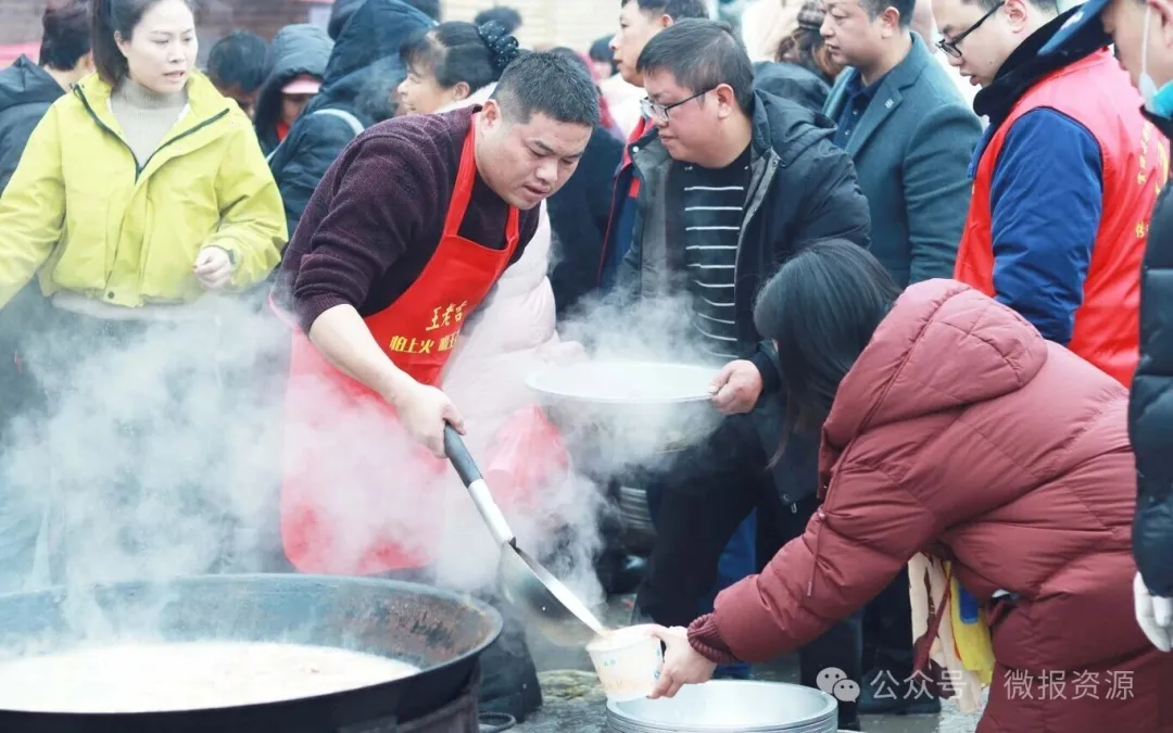 山间晨雾未散,千树凝霜挂雪,冰晶映着阳光莹白璀璨。游客们或驻足拍雾凇、或踏雪漫步,沉浸式感受南方冰雪的独特魅力,连连赞叹这冰雪美景。赏完冰雪美景,热气腾腾的杀猪宴正静待宾客。宴席区早已烟火升腾,柴火灶上铁锅滋滋作响,新鲜现宰的本地黑猪肉、酸炒腊肠、猪血汤、打霜青菜等美味菜肴接连出锅,鲜香四溢。五十余张餐桌错落雪景间,游客裹着厚外套围坐,大快朵颐,享受地道农家味,抬眼望去,尽是银装素裹的山间盛景。孩童追雪的笑声、炒菜的滋滋声、山间的风声交织成曲,冬日年味拉满。“没想到在南方还能一边赏雾凇一边吃杀猪宴,这趟太值了!”湖南永州游客周女士笑着说道。