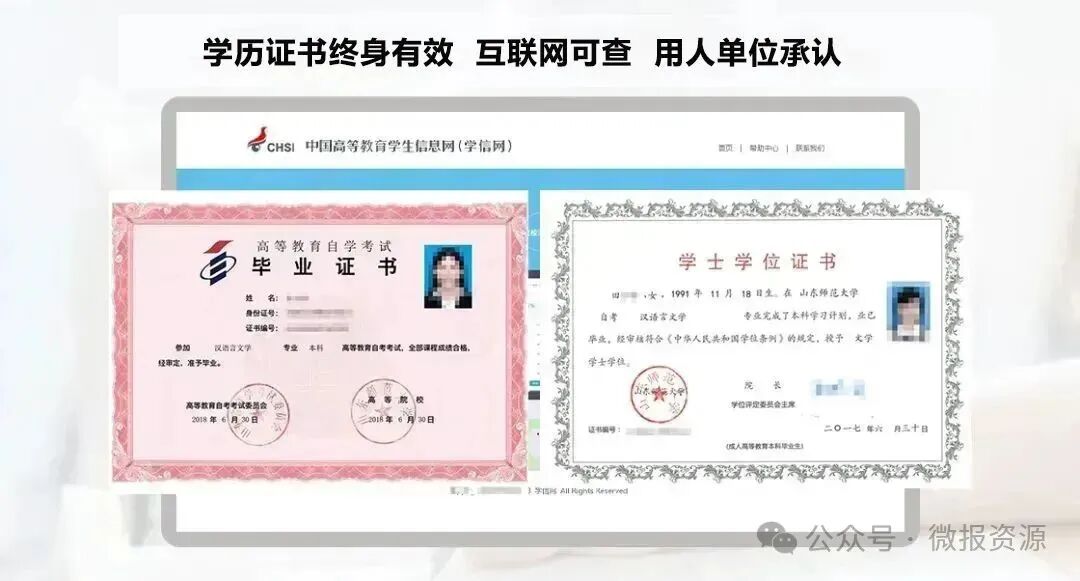 3、高等教育学历考试是继普通高等本科毕业证后含金量较高的,获得文凭后,学信网终生可查。