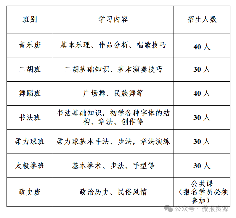 (三)按照班级名额,报满即止,每班报名人数少于10人不开班。