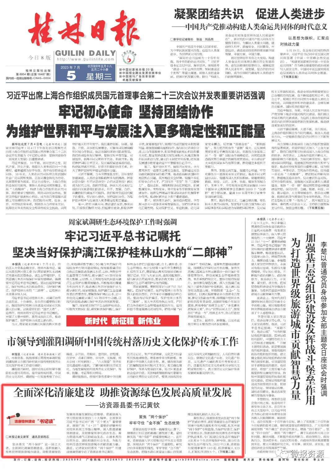 坚决落实“两个保护”这一国之大者,全面深化清廉资源建设,是积极融入桂林世界级旅游城市建设,助推资源绿色发展高质量发展的迫切需要。资源县深入学习贯彻落实党的二十大精神,全面落实习近平总书记对广西“五个更大”重要要求、视察广西“4·27”重要讲话精神和对桂林系列工作指示精神,深入推进清廉资源建设,及时修复和净化政治生态,着力营造风清气正的政治生态、山清水秀的自然生态、团结和谐的社会生态,为助力桂林打造世界级旅游城市贡献资源力量。最近,记者就如何落实“两个保护”和建设清廉资源专访了资源县委书记黄钦。