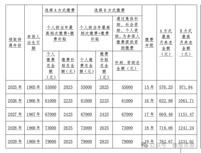 说明:关于“最高缴费档次标准”的具体情况,详见表一。